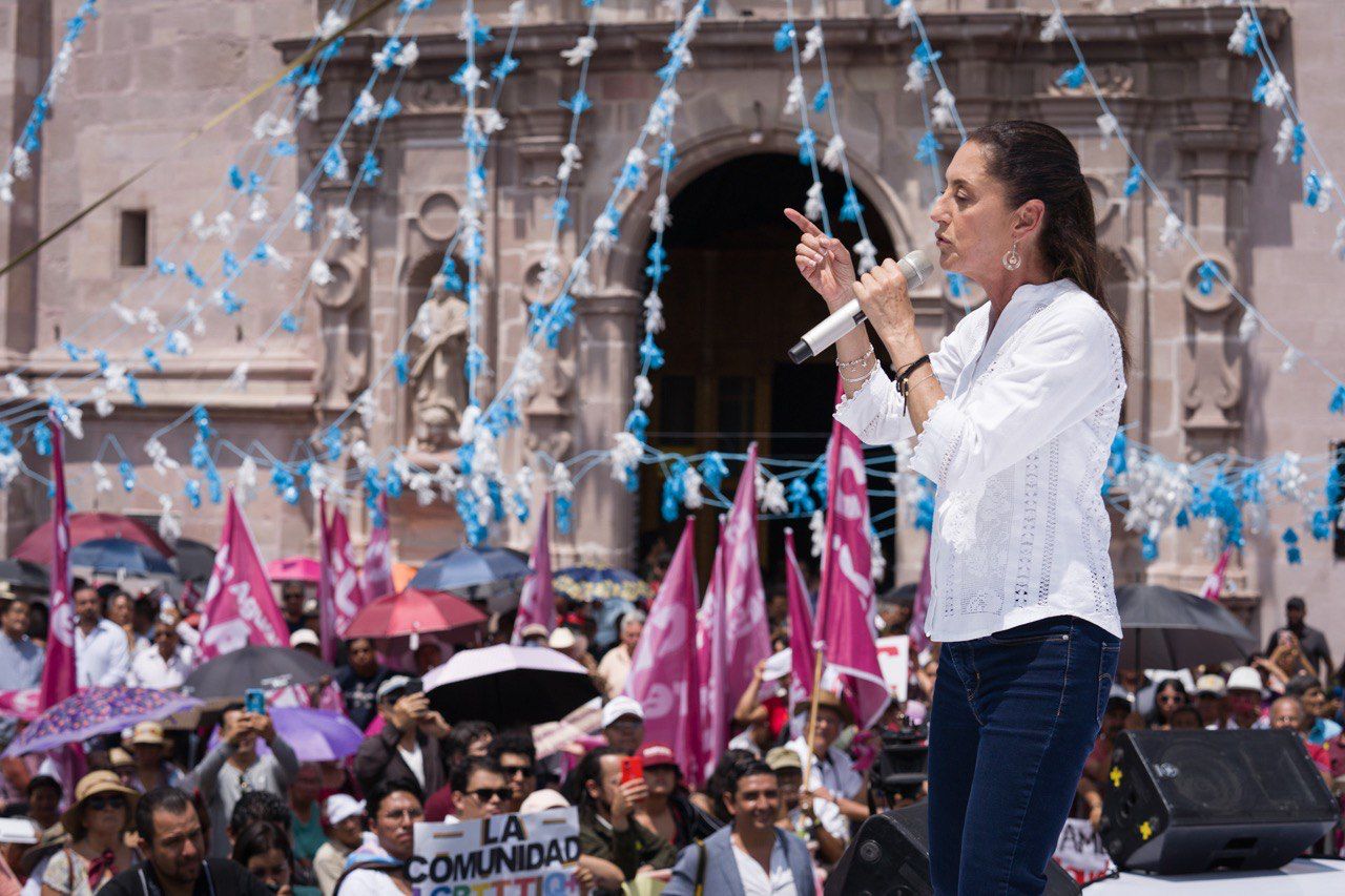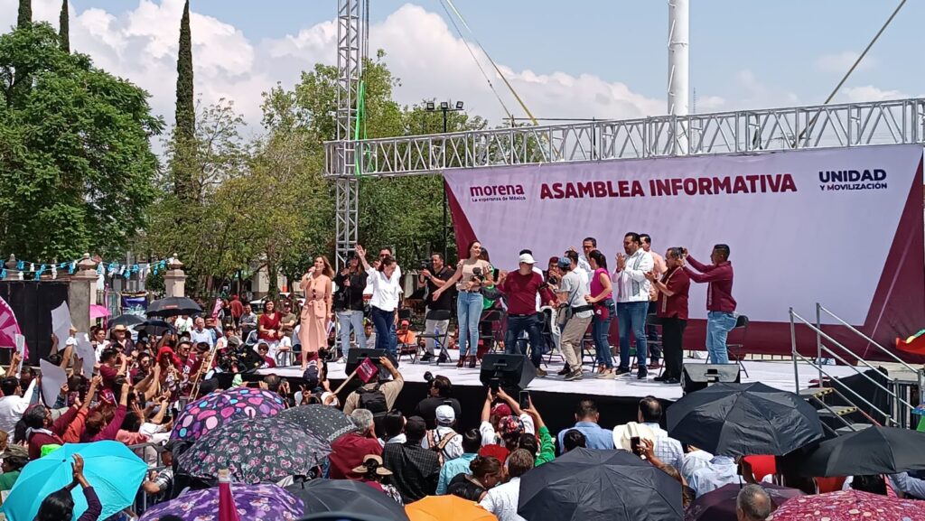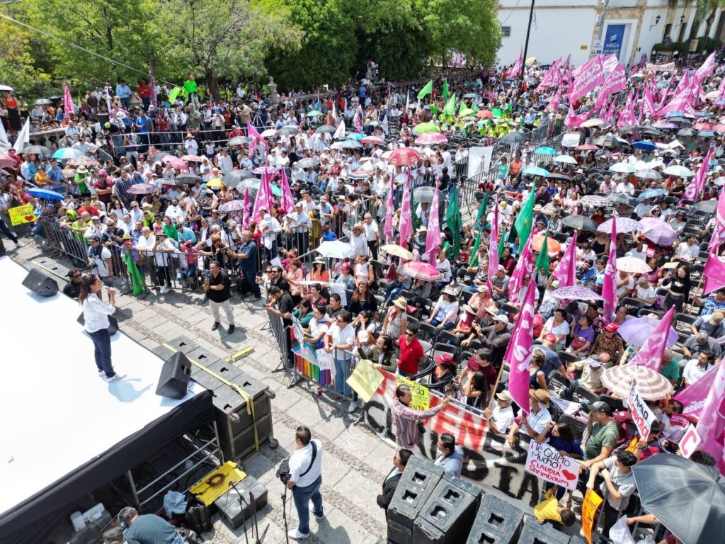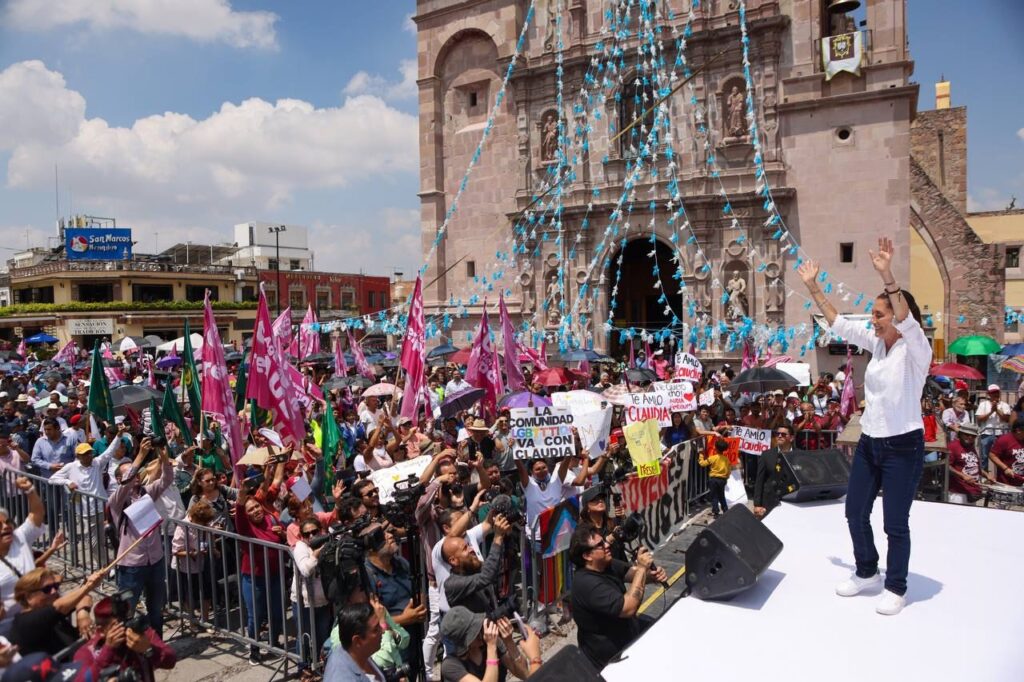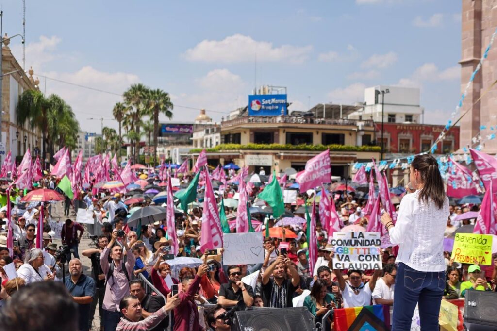 En la explanada del Jardín de San Marcos en Aguascalientes, la morenista Claudia Sheinbaum, quien busca ser la próxima presidenta del país, encabezó su “Asamblea Informativa” durante la cual señaló que ”cuando llega la derecha, se van los derechos”.