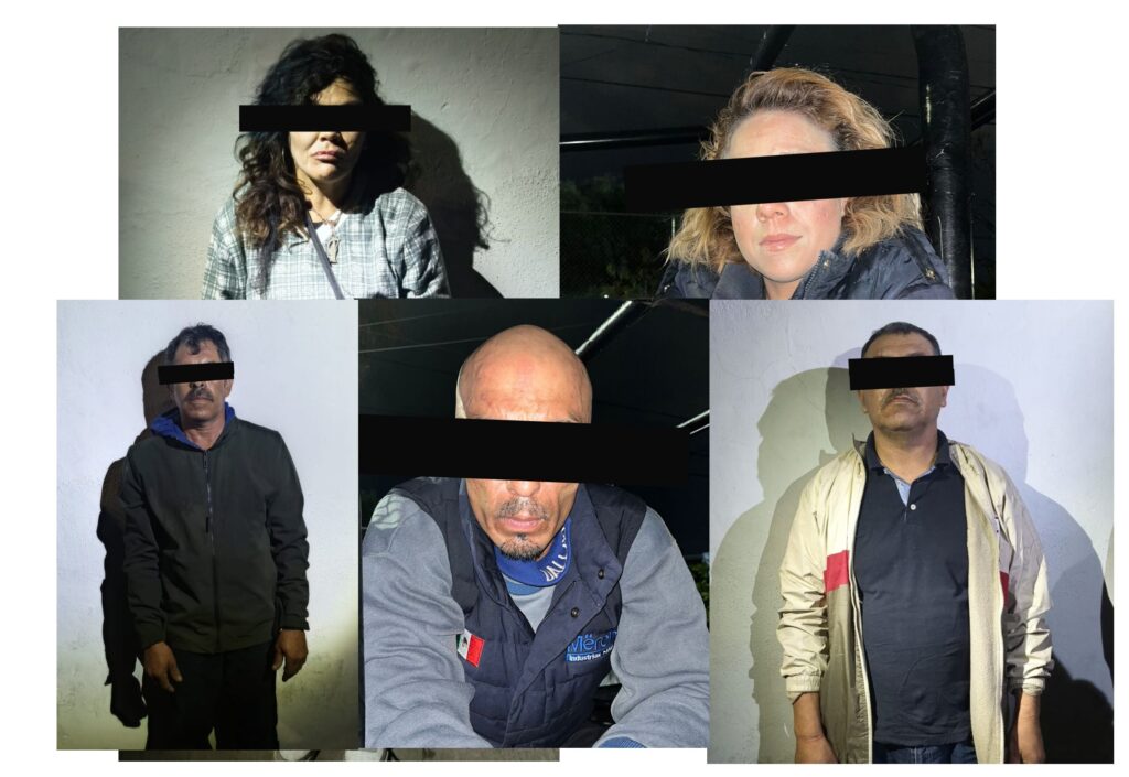 Como resultado de esta intervención, fueron aseguradas Tania, de 33 años de edad, Marta, de 44, José, de 41, Martín, de 50, y Alejandro, de 47 años. Tras su aseguramiento, fueron puestos a disposición del agente del Ministerio Público del fuero común en turno, en la Fiscalía General del Estado, donde se determinará su situación jurídica conforme a derecho.