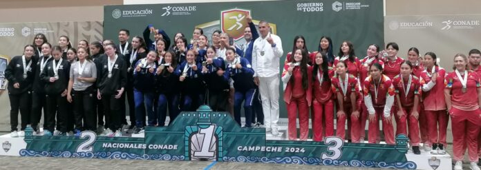 La medalla de oro se obtuvo en handball en la categoría Cadete Femenil, donde el equipo integrado por Celeste Michelle Rosales Valadez, Azlin Flores Vargas, Luz Alejandra Ramírez del Real, Montserrat Coronado Sánchez, Romina Zoe Muñoz Reyes, Sarah Alejandra Alaniz González, Emily Zadkiel Aguayo Medina, Victoria Rodríguez Hernández, Daniela López de la Rosa, Camilla Aguilera Montañez, Jennifer Atziri Valadez Bárcenas y Sara Getzemaní Andrade Saldívar, se consolidó como tricampeón al ocupar el primer puesto en esta categoría desde los Juegos Nacionales CONADE 2022.