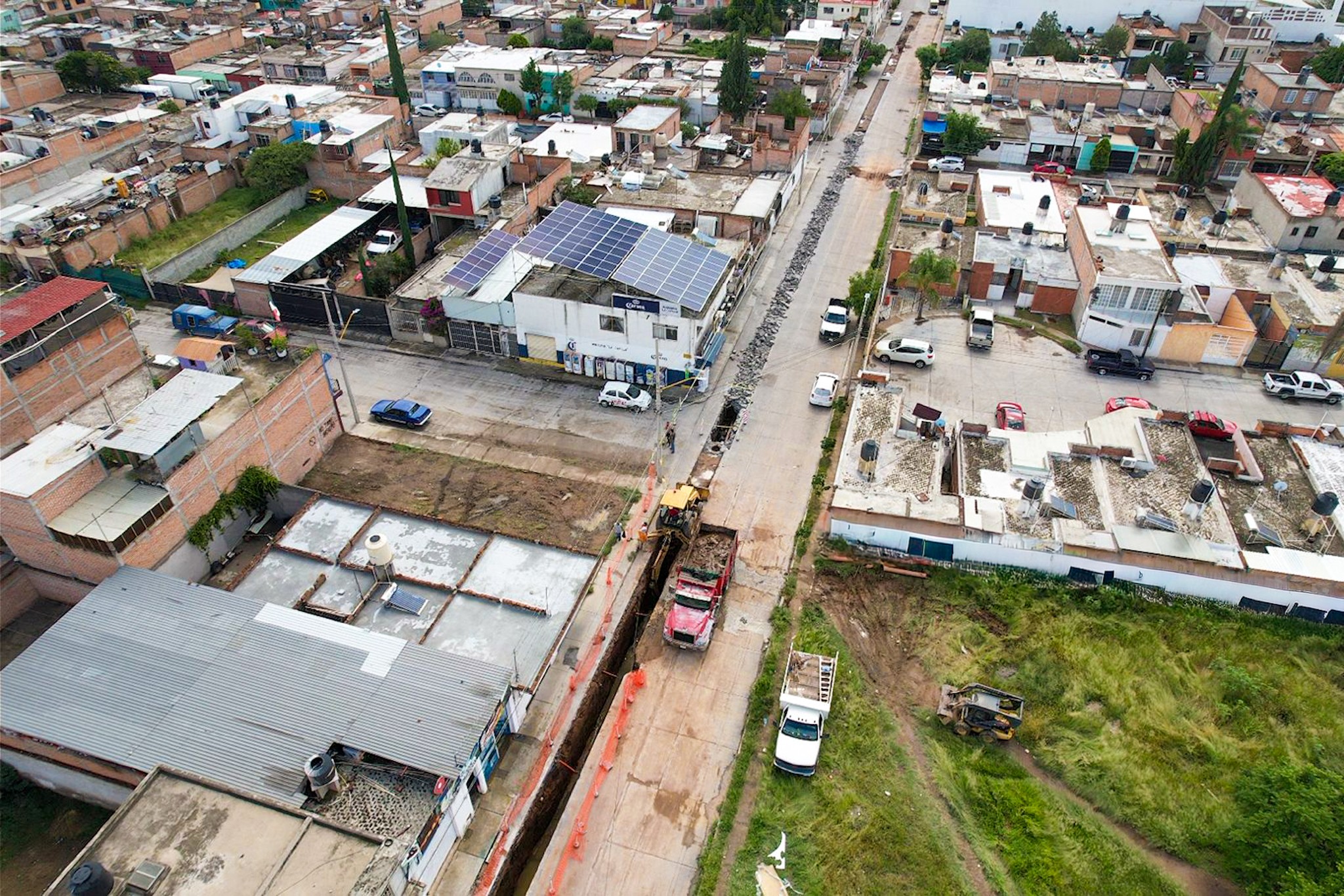 La obra se efectúa sobre la calle Juan B. Tijerina, en el tramo comprendido de Lázaro Cárdenas a la calle San Antonio de Padua, para ofrecer un servicio de drenaje más seguro, evitar riesgos y prevenir futuros brotes de aguas sanitarias.