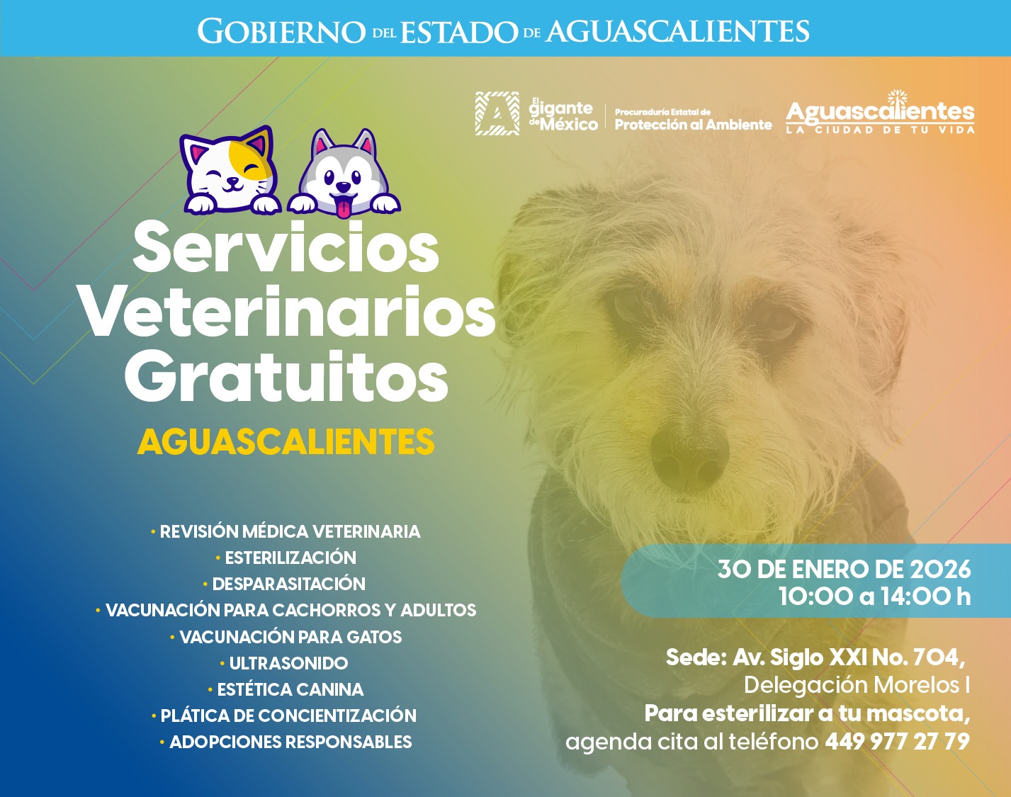 La Procuraduría Estatal de Protección al Ambiente y el Municipio de Aguascalientes, a través de la Coordinación General de Salud Pública, te invitan a la Caravana de la Salud Canina y Felina, que se llevará a cabo este 30 de enero.
