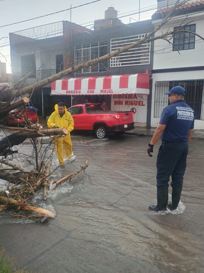 Gracias a los reportes recibidos en los números de atención 072 y 911, se logró atender de manera oportuna dos autos varados en Mirador de las Culturas y Haciendas de Aguascalientes, tres árboles caídos en el Fidel Velázquez y en Lomas de Vista Bella, cinco puntos de encharcamiento al oriente, una alcantarilla removida en Av. Ojocaliente esquina con Guadalupano, un poste caído en la colonia España y se realizó una revisión por nueve puntos con predisposición a inundaciones.
