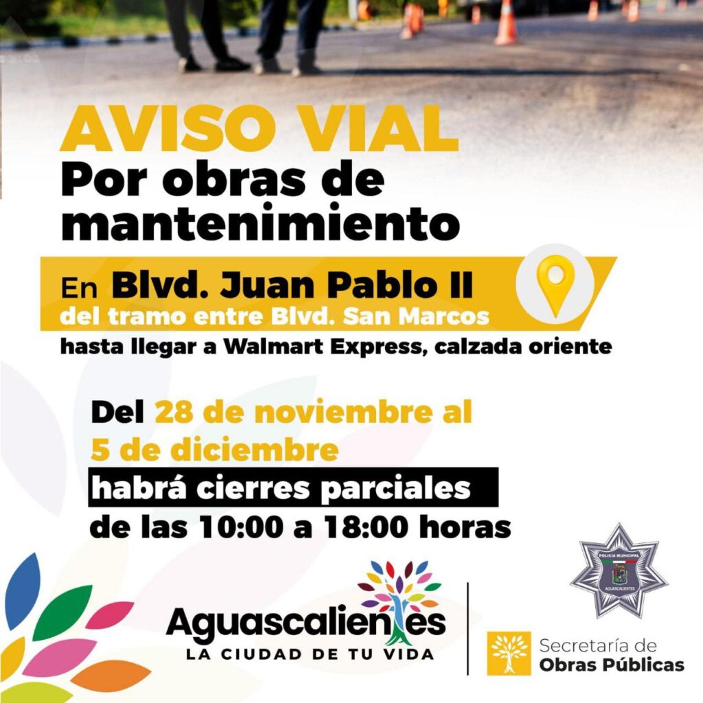 Blvd. Juan Pablo II del tramo entre Blvd. San Marcos hasta Walmart Express, Calzada Oriente.