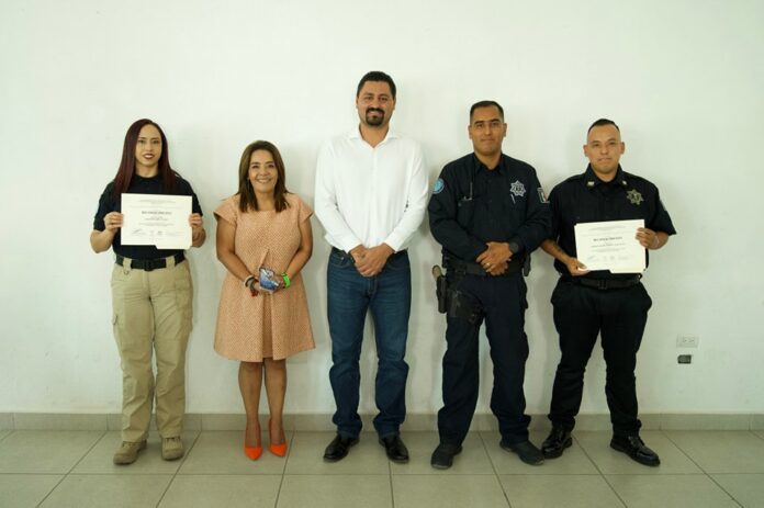 El presidente municipal de Pabellón de Arteaga, Bernardino Flores Valles, hizo entrega de los reconocimientos a policías y personal administrativo de la Dirección de Seguridad Pública Municipal que concluyeron satisfactoriamente el Taller de Políticas de Seguridad con Perspectiva de Género.