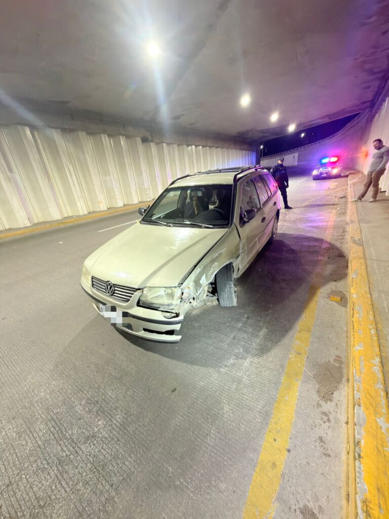 Al ingresar al paso a desnivel, en el cruce con Avenida Aguascalientes, el conductor lo hacía en estado de ebriedad, por lo que perdió el control de la dirección en una curva hacia la izquierda, impactando su neumático delantero izquierdo contra la guarnición de la banqueta y subiéndose parcialmente a la misma.
