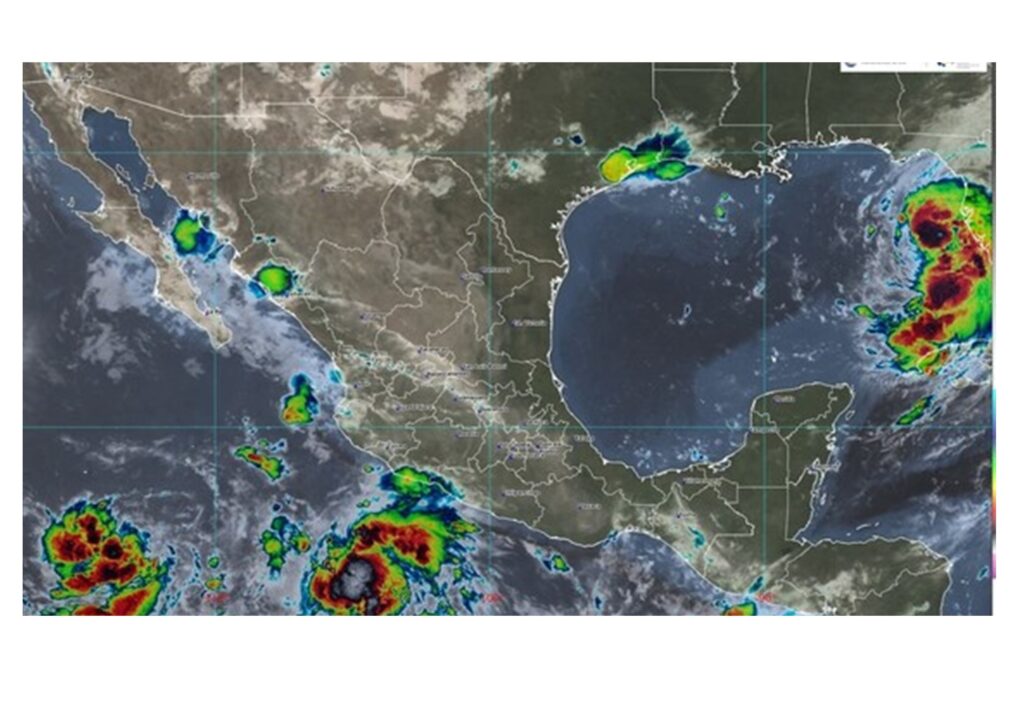 Una zona de baja presión con 70 por ciento de probabilidad para desarrollar un ciclón tropical en 48 horas, a 640 kilómetros (km) al sur de Punta San Telmo, Michoacán, sobre el océano Pacífico, y el flujo de humedad del mar Caribe ocasionarán lluvias muy fuertes en Chiapas, así como fuertes en Campeche, Colima, Jalisco, Michoacán, Nayarit, Quintana Roo, Tabasco y Yucatán.