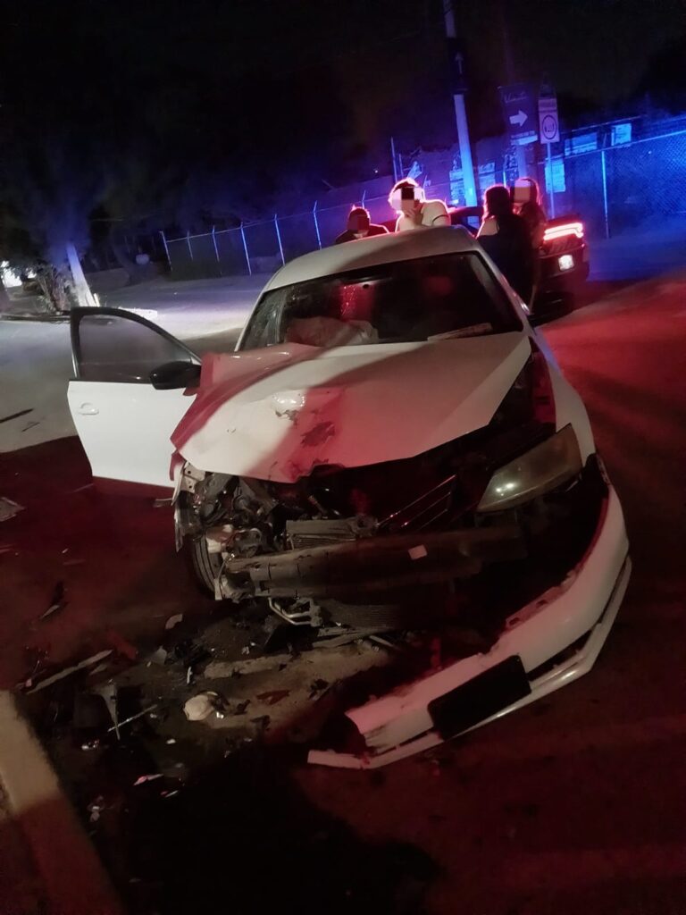 Al llegar al cruce con calle Díaz, realizó una maniobra de vuelta a la izquierda sin la debida precaución y en aparente estado de ebriedad, impactando su parte lateral posterior derecha contra el ángulo delantero derecho de un vehículo Volkswagen Jetta modelo 2017, color blanco, con placas de Aguascalientes, conducido por un joven 19 años de edad, quien también se encontraba en aparente estado de ebriedad y transitaba sobre la misma vía en dirección de norte a sur por el carril izquierdo.