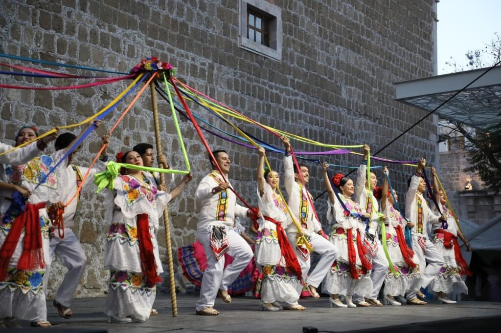 La Compañía Estatal de Danza de Aguascalientes presentó en el Patio de las Jacarandas un espectáculo de folclor mexicano, conformado por distintas danzas y bailes de México.