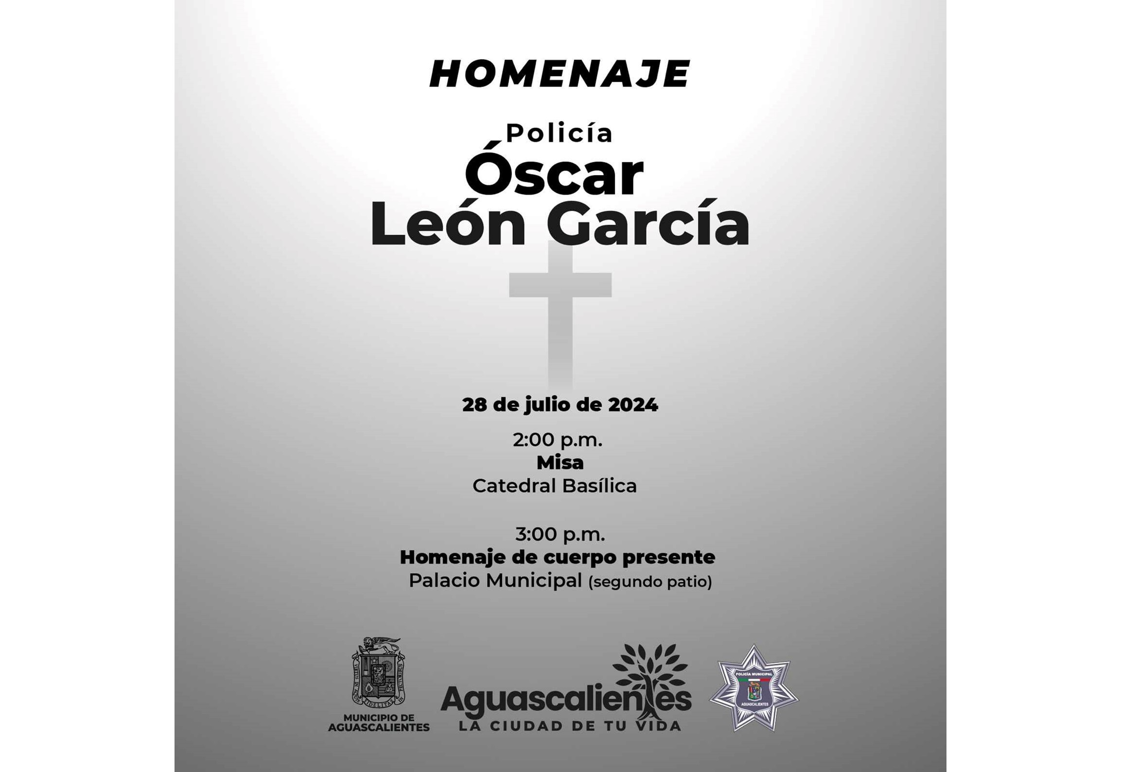 El Ayuntamiento de Aguascalientes, encabezado por el alcalde Leonardo Montañez, darán el último adiós al elemento de la Secretaría de Seguridad Pública del Municipio de Aguascalientes que perdió la vida en cumplimiento de su deber.