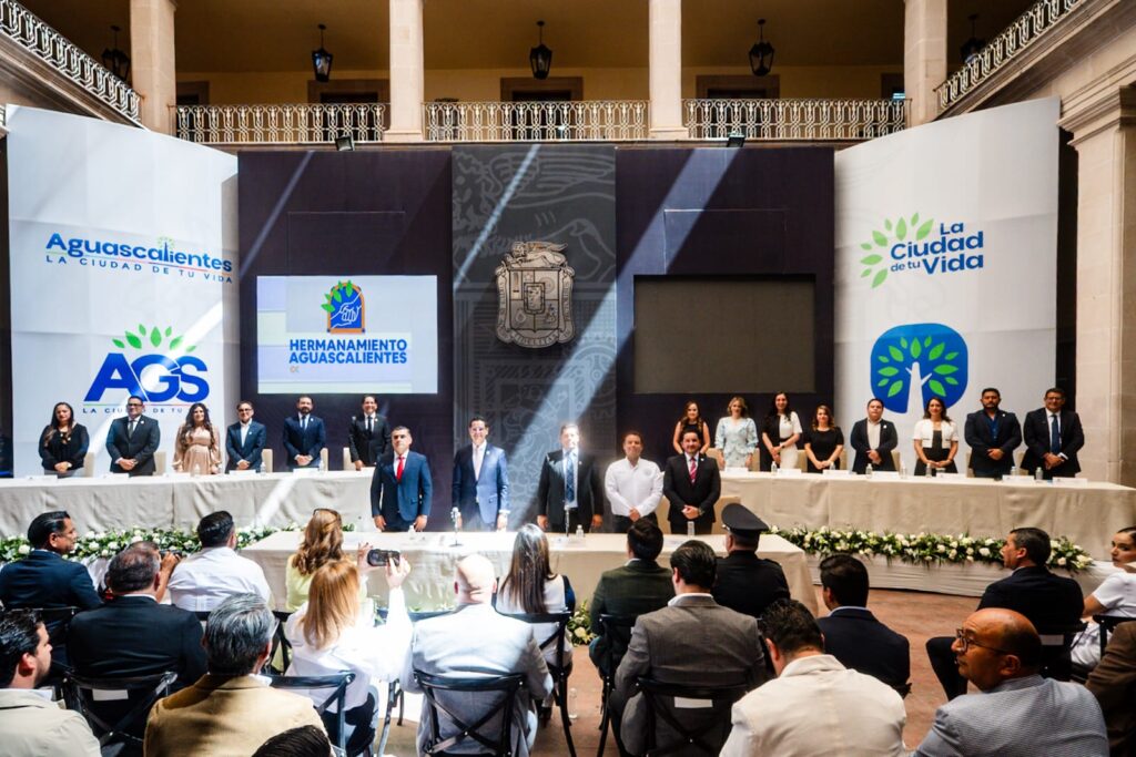 Leo Montañez enfatizó que a través de estos hermanamientos se impulsa el intercambio de prácticas exitosas que enriquecen el desarrollo social, cultural, turístico y económico, para la construcción de mejores ciudades y un mejor México. Añadió que Aguascalientes ha sido cuna de importante acuerdos que han forjado el rumbo del país como la Soberana Convención. Puntualizó que estas firmas se verán reflejadas en mejor seguridad y acciones a favor de la patria.