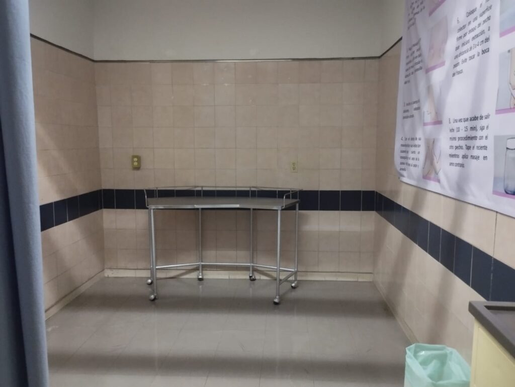 El “lactario” en el que según sus propias reglas tiene que ser un espacio limpio, adecuado, cómodo y privado, fotografías enviadas por la denunciante, reflejan que se carece de todo ello, por lo que las madres prefieren llegar con su leche a tener que usar este espacio, en el que además de no contar con una sola silla, deben guardar turnos si desean usarlo.