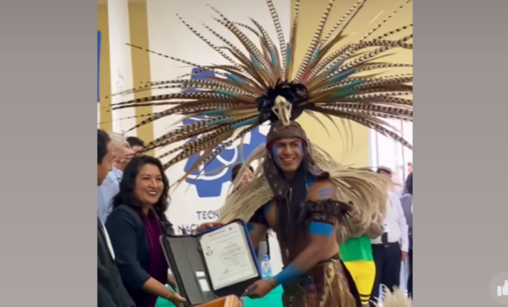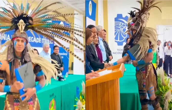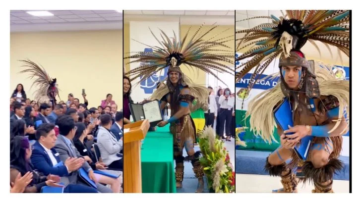 López Holcan Mattero se volvió tendencia en las redes sociales al recibir su diploma usando el traje de la cultura azteca durante la ceremonia de graduación en el Tecnológico Nacional de México.