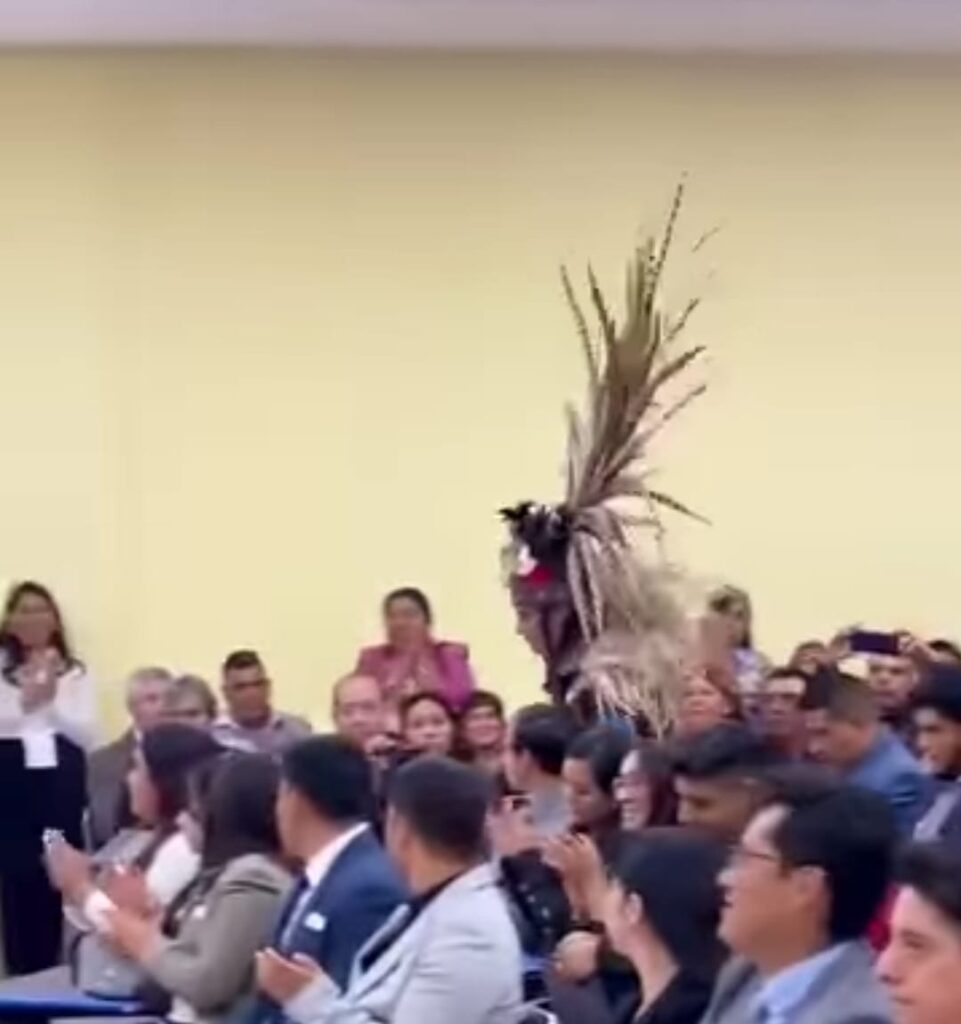 InicioENTRETENIMIENTODescalzo y con traje prehispánico, joven acude a su graduación