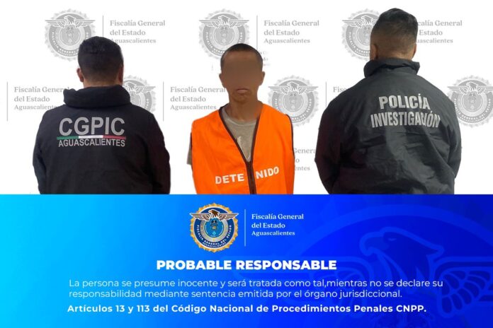 Con esta información y derivado de la colaboración Interinstitucional, en coordinación con personal de la Fiscalía General del Estado de Zacatecas, se logró la captura del objetivo, mismo que fue trasladado en una primera instancia ante el agente del Ministerio Público del vecino Estado y posteriormente trasladado a Aguascalientes.