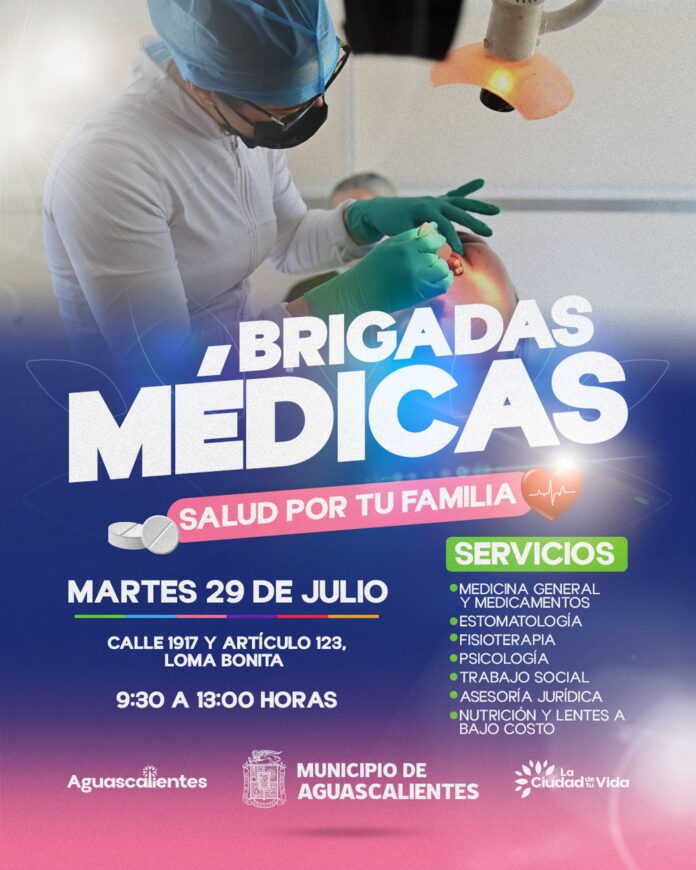El Municipio de Aguascalientes, a través del DIF Municipal, continúa fortaleciendo su compromiso con la salud de las familias, y por ello invita a la ciudadanía a la próxima Brigada Médica Gratuita, que se llevará a cabo el martes 29 de julio de 2025 en la colonia Loma Bonita.