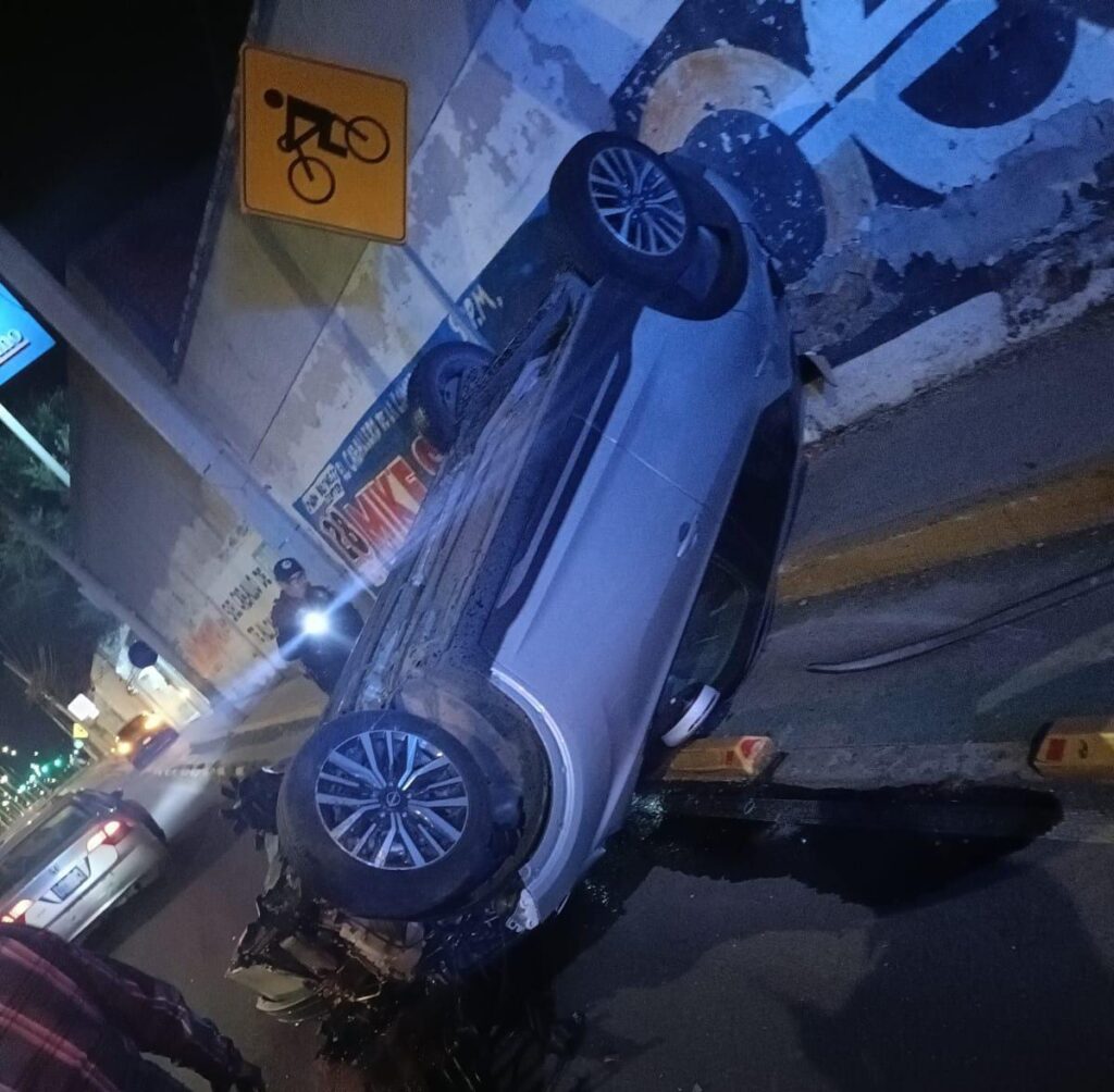 Alrededor de las 04:00 horas, se registró un accidente tipo choque contra objeto fijo con posterior volcadura sobre Avenida Lic. Miguel de la Madrid, a la altura de la calle Lomas, en el fraccionamiento Campestre.