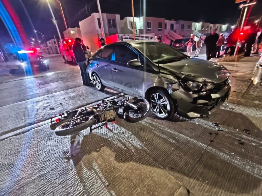 Durante la madrugada, alrededor de las 03:50 horas, se registró un choque en el cruce de las calles Alcamo y Parma, en el que se vieron involucrados un automóvil y una motocicleta.