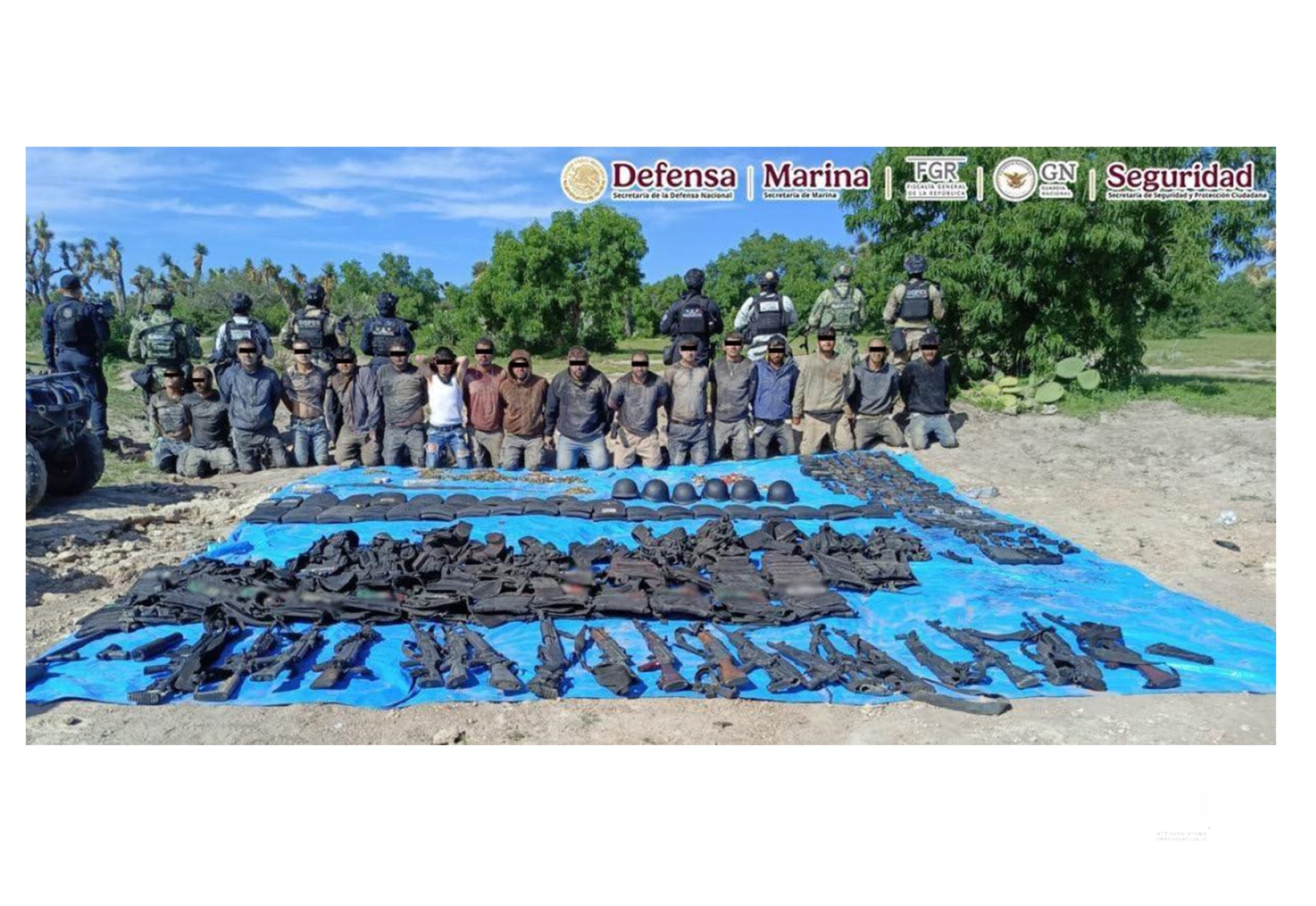 Para salvaguardar la integridad de los habitantes de la región, los agentes de seguridad implementaron diferentes técnicas y tácticas operativas, que dieron como resultado la detención de 18 personas y el aseguramiento de 20 armas de fuego, un aditamento lanzagranadas, 28 chalecos tácticos, cascos, cargadores, cartuchos y fornituras, además de un kilo de polvo blanco.