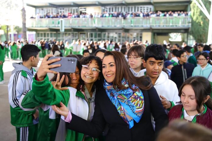 En el reinicio del ciclo escolar, en el que 291 mil estudiantes de educación preescolar, primaria y secundaria regresaron a las aulas, la gobernadora de Aguascalientes, Tere Jiménez, refrendó su compromiso con las y los alumnos, a quienes hizo saber que contarán en todo momento con las herramientas que les permitan salir adelante y conquistar el mundo, como las becas educativas.