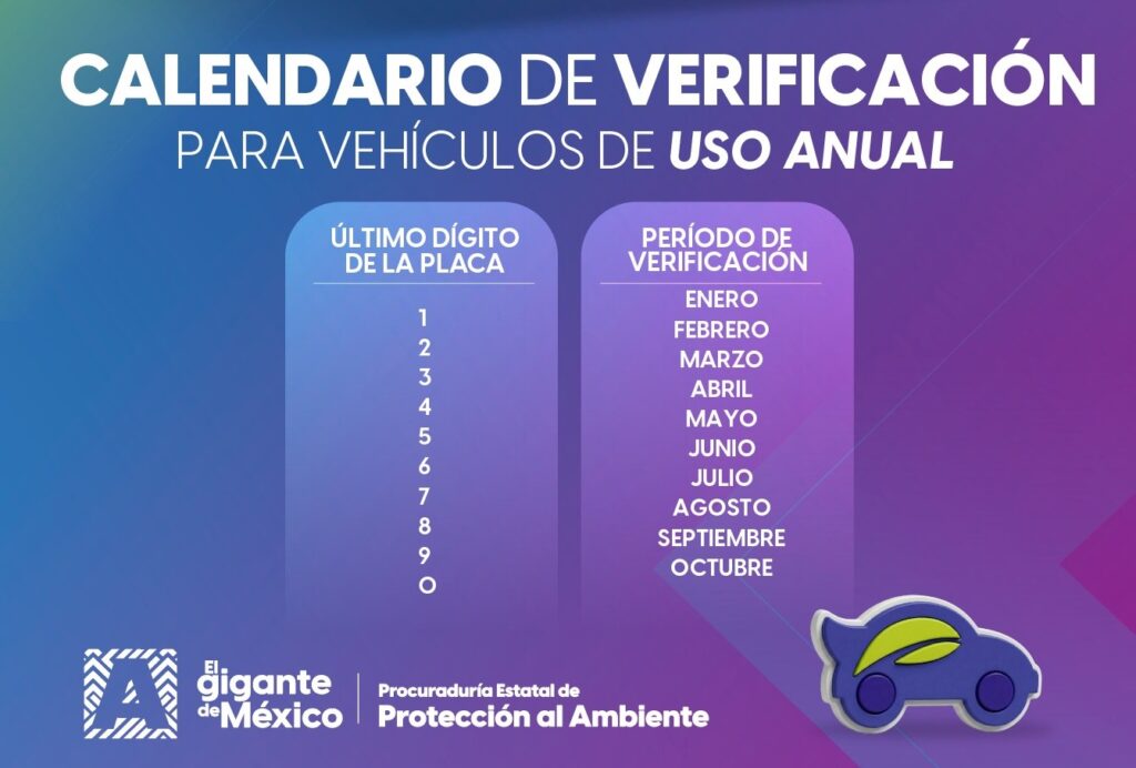En cuanto al calendario de verificación, éste corresponde a los 10 primeros meses del año con el número de terminación de la placa, por ejemplo en enero verifican matrículas terminadas en 1, febrero, 2 y así sucesivamente hasta octubre con la terminación 0.