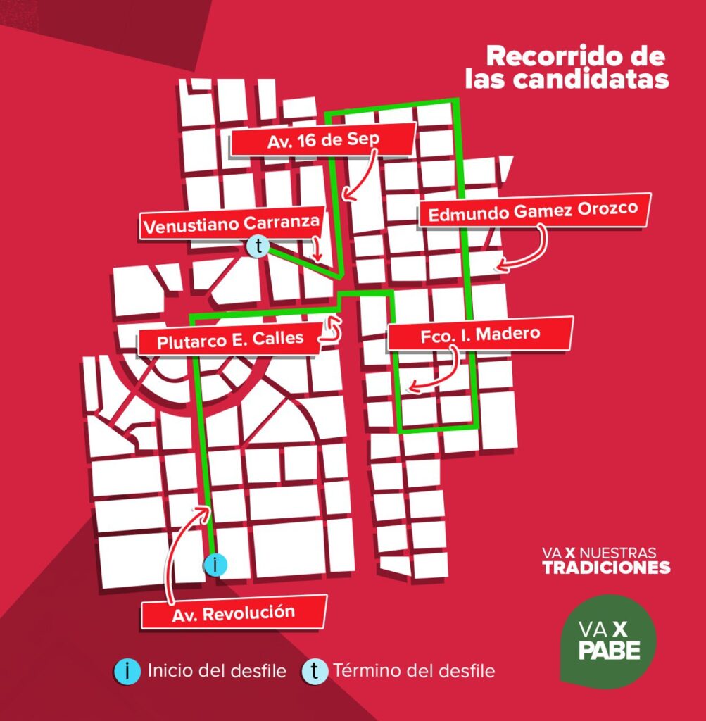 El recorrido de las candidatas será por las calles Plutarco Elías Calles, Francisco I. Madero, Edmundo Gamez Orozco y la avenida 16 de Septiembre, para finalizar en Venustiano Carranza.