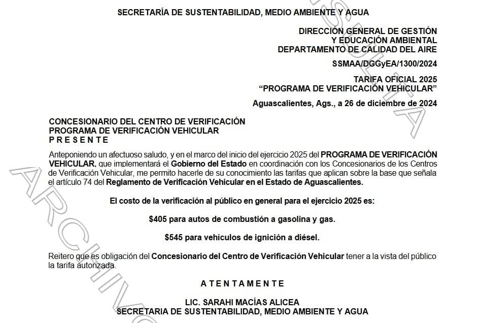 Este es el costo de la Verificación Vehicular en Aguascalientes para 2025
