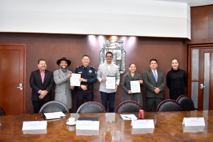 En la firma de convenio participaron la síndica procuradora del Ayuntamiento de Aguascalientes, Yadira Azucena Salas Aguilar; el secretario del H. Ayuntamiento, Luis Enrique García López; el director del Centro de Evaluación y Control de Confianza, Avilio Márquez Fuentes; el secretario de Seguridad Pública Municipal, Gonzalo Pérez Zúñiga; la directora del Instituto Superior en Seguridad Pública, Pamela Soria Armengol; el representante del Instituto Mexicano de Profesionalización Educativa, Sergio Arturo López Porcayo y el titular del Instituto para la Educación de las Personas Jóvenes y Adultas (INEPJA), Manuel Alejandro Monreal Dávila.