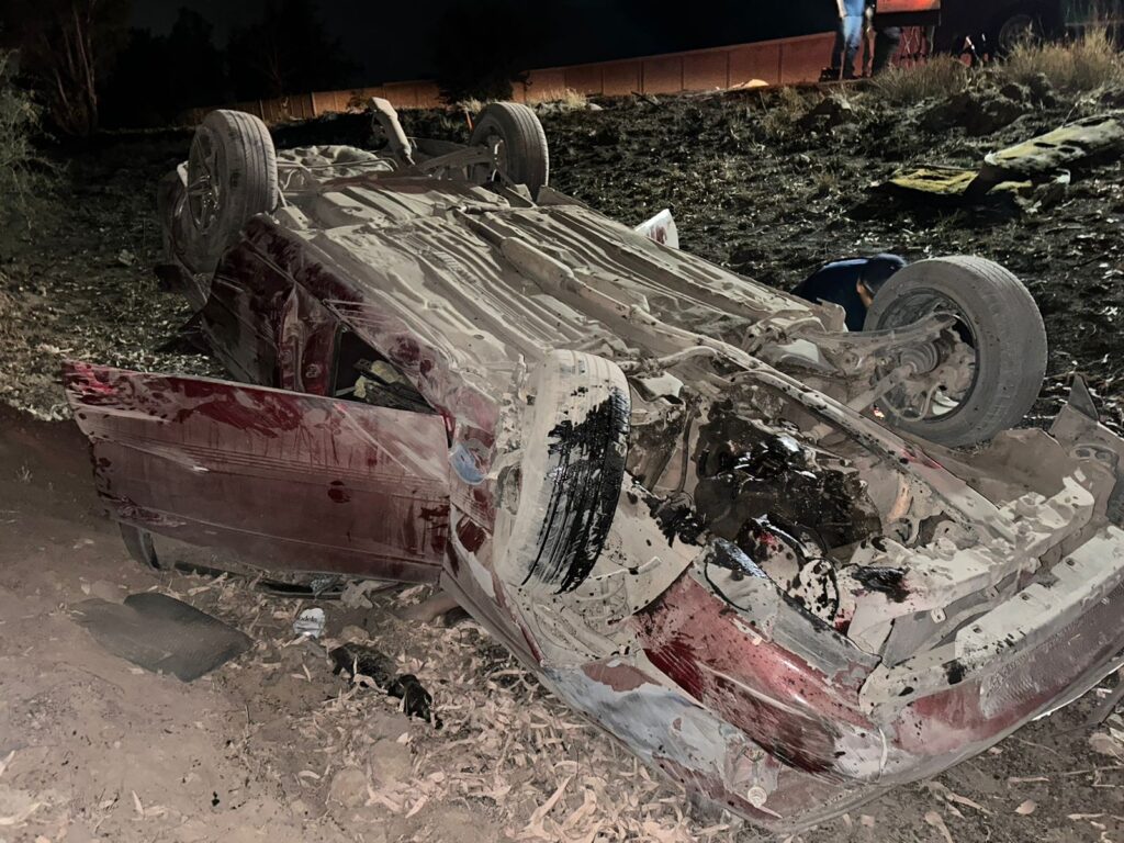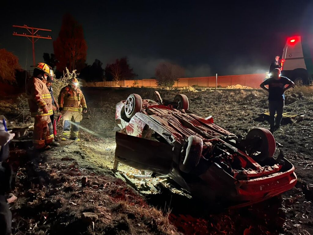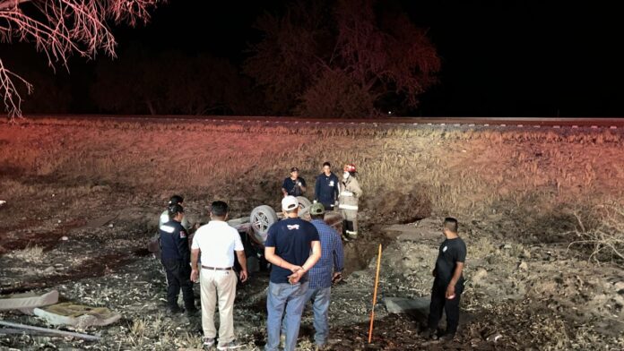 Siendo las 0027 horas personal operativo y paramédicos de la Coordinación Municipal de Protección Civil de Pabellón de Arteaga acudieron a la carretera estatal 90 km 3+300 al reporte de un accidente automovilístico tipo salida de camino y posterior volcadura de un vehículo NISSAN TSURU color rojo con placas de circulación ABZ818F.