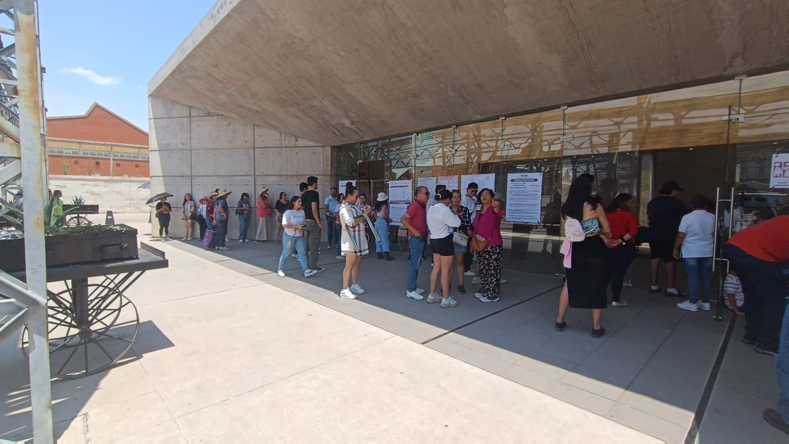 Otra persona en la fila señaló: “de Tampico Tamaulipas, nada más que trabajo aquí en Aguascalientes, mucho calor, ahora sí que todo mundo deshidratándose, estábamos de aquel lado pegados a la barda y pues bueno, hasta ahorita que lo pusieron aquí a la sombra”.