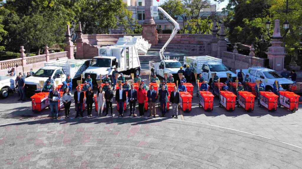 El secretario de Servicios Públicos, Carlos Ernesto España Martínez, explicó que en esta acción de cierre de año, se entregaron en la Plaza de la Patria, un camión compactador de desechos sólidos urbanos, una grúa para mantenimiento y rehabilitación de alumbrado, 25 carritos recolectores de basura que incluyen accesorios, dos camionetas de 3.5 toneladas para la operación de parques y jardines, dos camionetas más para reforzar la arborización del programa «Plantando el árbol de mi casa» y un vehículo utilitario para supervisión de limpia, los cuales representan una inversión superior a los 9 millones 716 mil pesos.