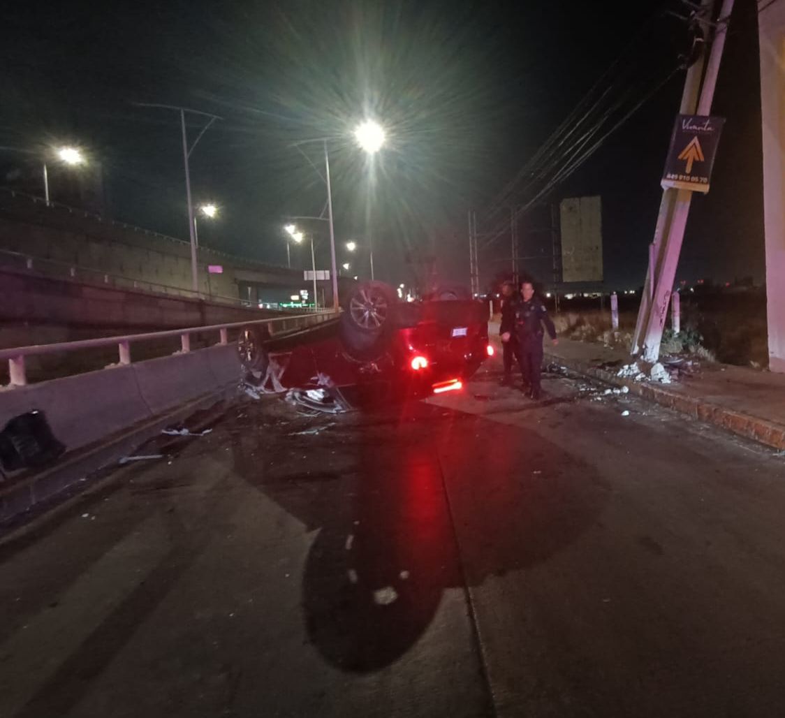 Durante la madrugada, alrededor de las 01:20 horas, se registró un choque contra objeto fijo con posterior volcadura sobre el Boulevard a Zacatecas, en su cruce con la Avenida Siglo XXI, en el fraccionamiento Trojes de Alonso.