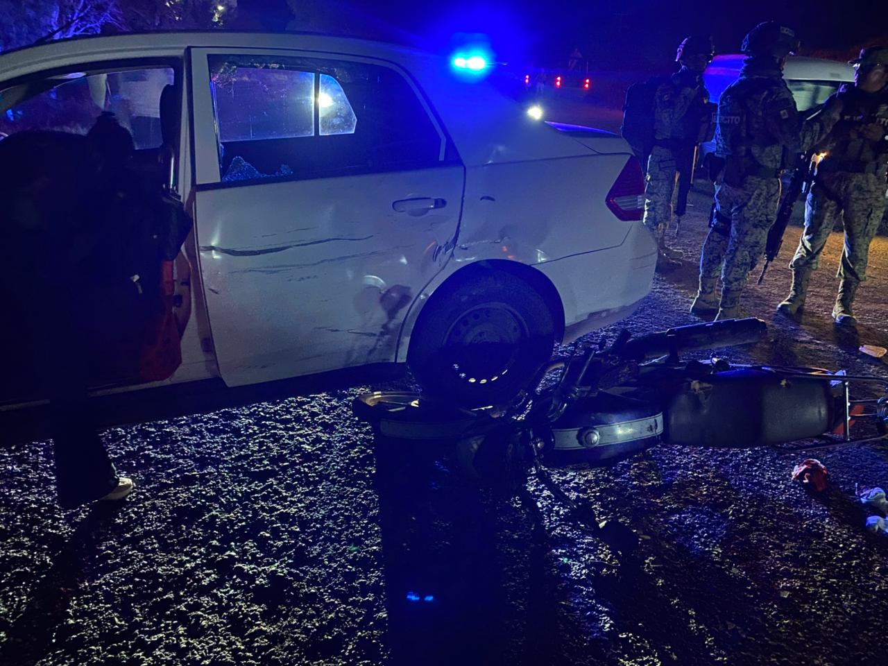 El reporte del accidente se recibió en el Servicio de Emergencias 911 la noche de este sábado en el que se informaba que sobre la carretera estatal número 18 a la altura del kilómetro 3+700 se había registrado un choque lateral entre un vehículo y una motocicleta, al lugar acudieron de inmediato uniformados de la Policía Estatal y paramédico del ISSEA.