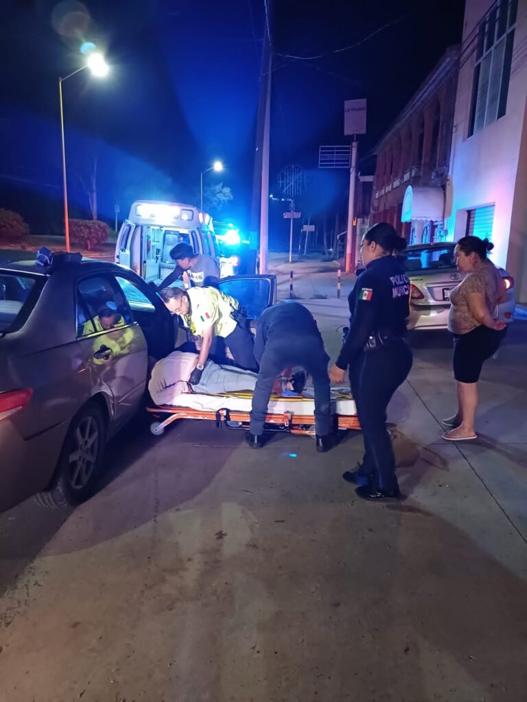 Debido a que se desplazaba sin precaución, terminó por impactar un vehículo de la marca Honda en color champagne con placas de circulación de Aguascalientes y en el cual se desplazaban Juan Pablo, de 23 años de edad y su acompañante María de Jesús, de 38.