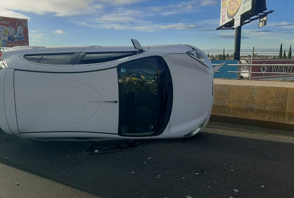 La mañana de este miércoles alrededor de las 07:10 horas, se registró un accidente tipo alcance con posterior volcadura sobre Avenida Aguascalientes, a la altura de Avenida de los Maestros, en el fraccionamiento La España.