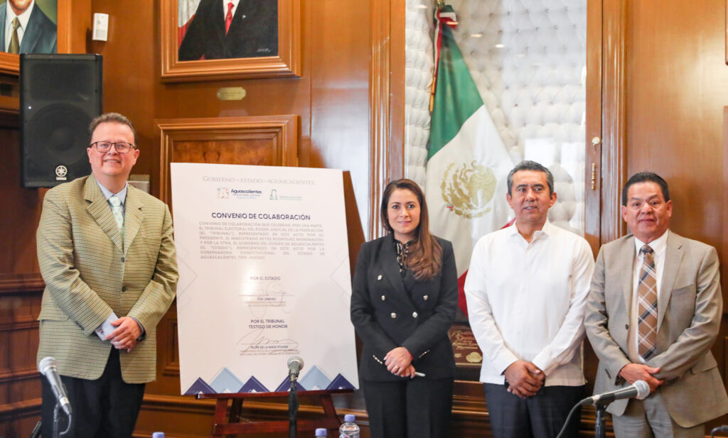 Con el propósito de profesionalizar y actualizar al personal del Gobierno del Estado, la gobernadora de Aguascalientes, Tere Jiménez, firmó un convenio de colaboración con el Tribunal Electoral del Poder Judicial de la Federación para que servidores públicos participen en la Maestría en Derecho Electoral.