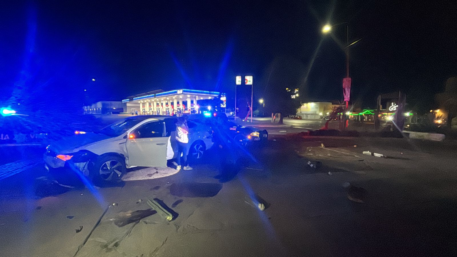 Al intentar realizar una vuelta continua hacia la derecha en Avenida José H. Escobedo, el conductor quien se encontraba bajo los efectos del alcohol, perdió el control del vehículo, proyectándose contra el camellón central y colisionando con una palmera, un cactus y una lámpara decorativa.
