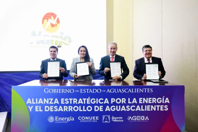 Con el fin de hacer una alianza para fortalecer la eficiencia energética y el desarrollo de Aguascalientes, la gobernadora Tere Jiménez firmó como testigo de honor un convenio de colaboración entre la Agencia de Energía del Estado de Aguascalientes (Ageea) y la Comisión Nacional para el Uso Eficiente de la Energía (Conuee).