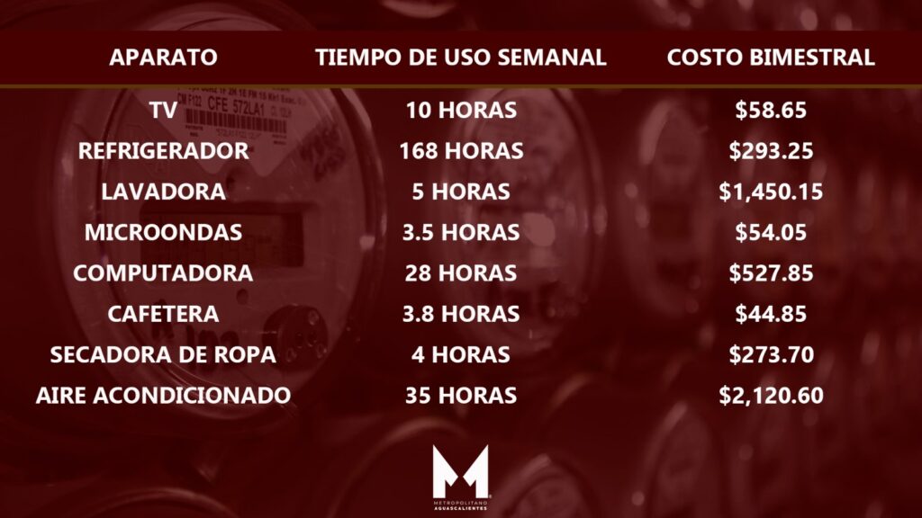 Son muchas las quejas en los últimos meses de usuarios que reportan un alto incremento en su recibo de luz; al respecto la Comisión Federal de Electricidad dio a conocer un listado del aproximado de costos bimestrales por cada aparato eléctrico usados más comúnmente en el hogar.