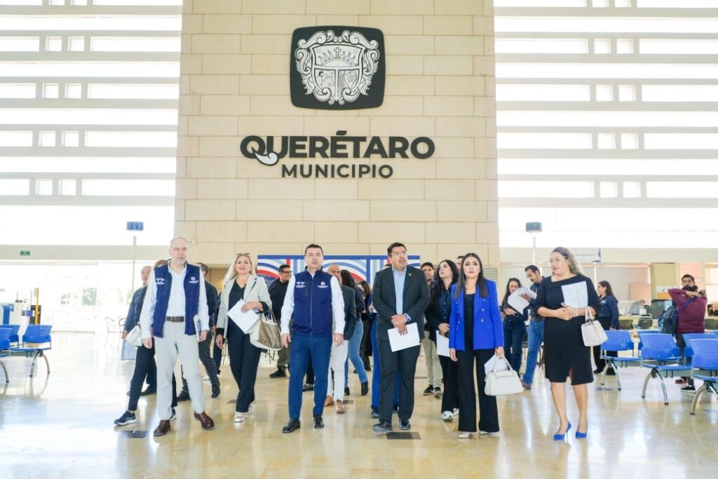 Durante la gira, el presidente municipal César Medina, acompañado por titulares de las áreas de Finanzas, Mejora Regulatoria, Desarrollo Urbano, Atención Ciudadana, Obras Públicas, Justicia Cívica y regidores, recorrieron el Centro Cívico de Querétaro, reconocido por sus procesos eficientes y su modelo integral de atención.