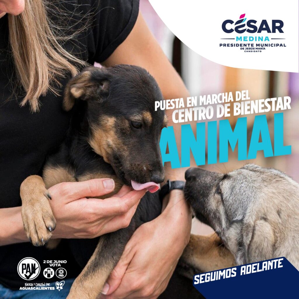 El candidato a la presidencia municipal de Jesús María, por la alianza Fuerza y Corazón por Aguascalientes, César Medina Cervantes, propuso la creación de un centro de bienestar animal, que contará con esterilizaciones y vacunas, el cual operará bajo las normas sanitarias y de respeto a la población canina y felina.
