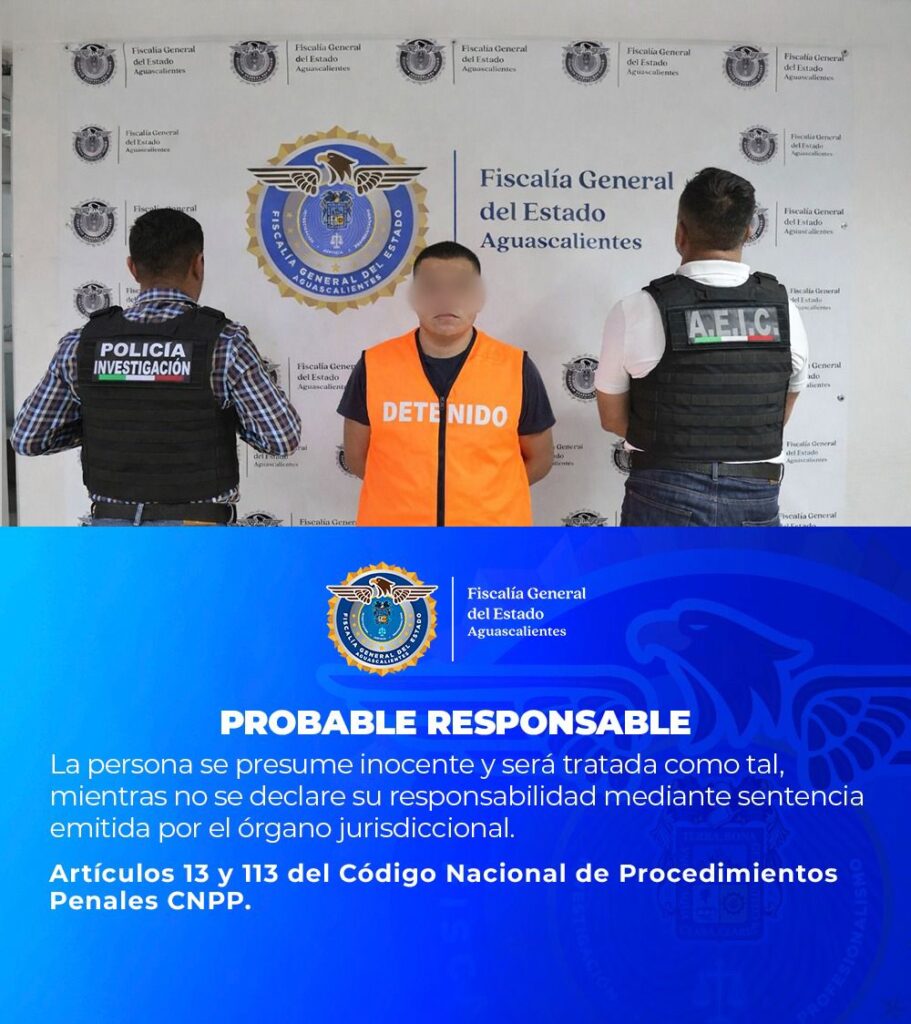 Tras su detención, el imputado fue trasladado a las instalaciones de la Fiscalía General del Estado de Aguascalientes, donde se realizaron los procedimientos legales correspondientes conforme a derecho.