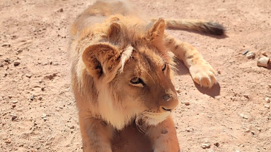El reporte se recibió a las 10:40 horas de este martes en el C4 Municipal de Aguascalientes, en el que se manifestaba que en Avenida San Gabriel en el kilómetro 2 aproximado, a la altura de la comunidad Norias de Ojocaliente, se encontraba un león en un predio de venta de autopartes usadas con razón social «El Cache», por lo anterior al sitio se trasladaron uniformados de la policía preventiva del Destacamento Terán Sur.