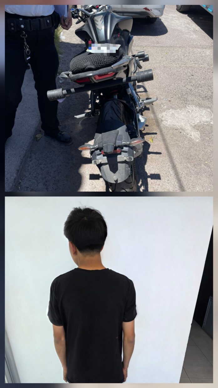 De acuerdo con el reporte, el padre, identificado como Iván, informó a las autoridades que su hijo se encontraba en posesión de una motocicleta que no era de su propiedad. Se trataba de una unidad marca Italika 250Z, color gris, modelo 2022, con placas del estado de Aguascalientes, la cual contaba con reporte de robo, el padre notó que el vehículo coincidía con las características de una publicación de búsqueda.