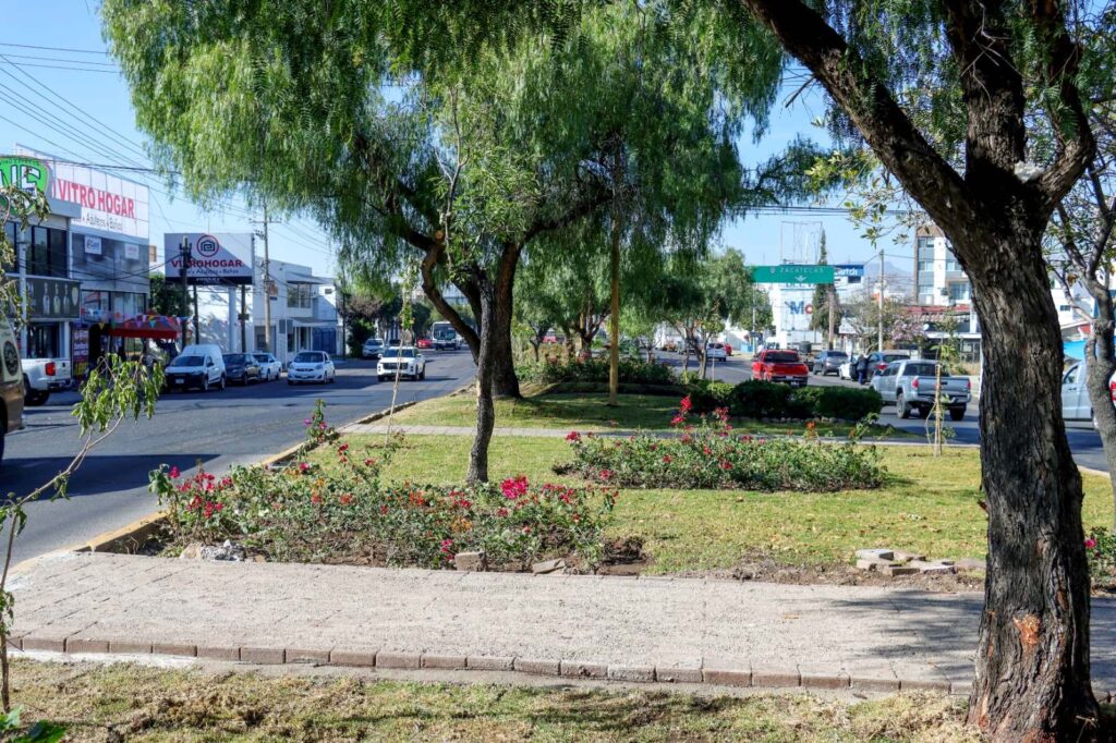 Se trabajó en la renovación del camellón en López Mateos, en el tramo comprendido entre la avenida de la Convención de 1914 poniente y avenida Aguascalientes poniente, integrando vegetación para embellecer el área.