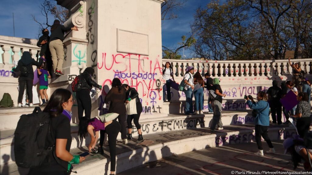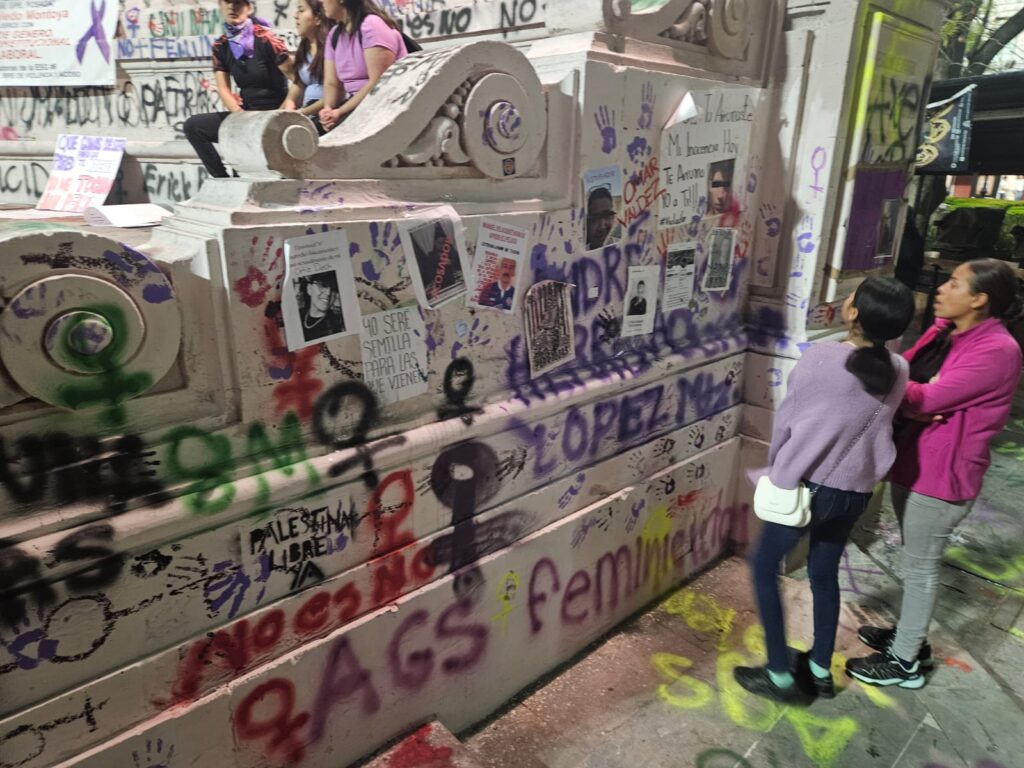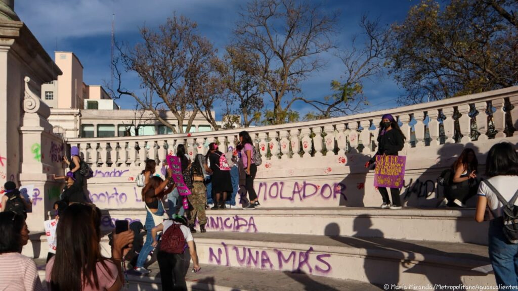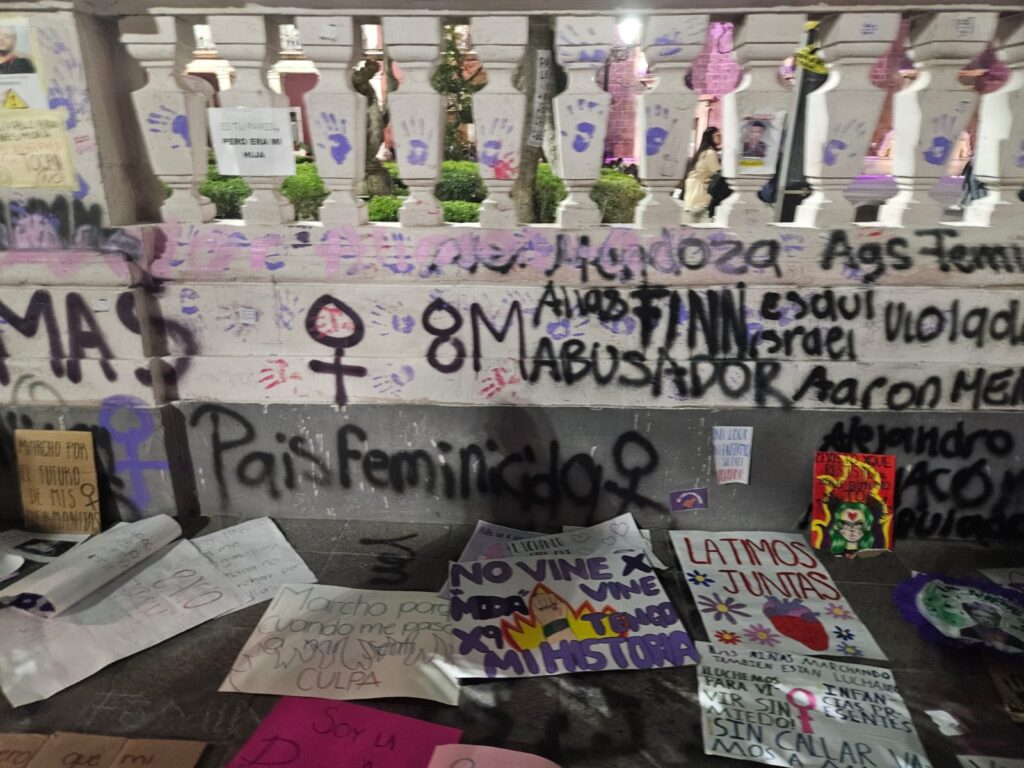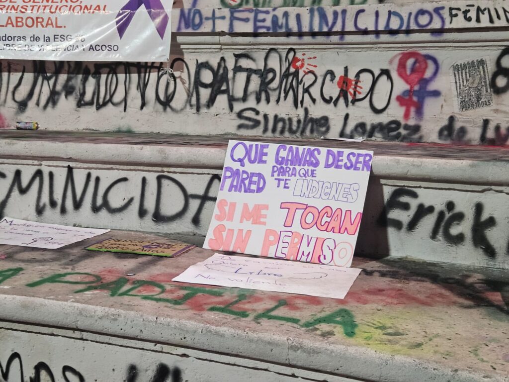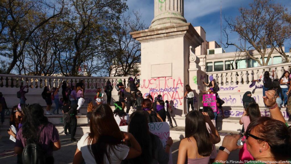 Estos son algunos de los mensajes, pintas y pancartas que mujeres dejaron en la Exedra de la ciudad de Aguascalientes durante la manifestación por la Conmemoración del Día de la Mujer.