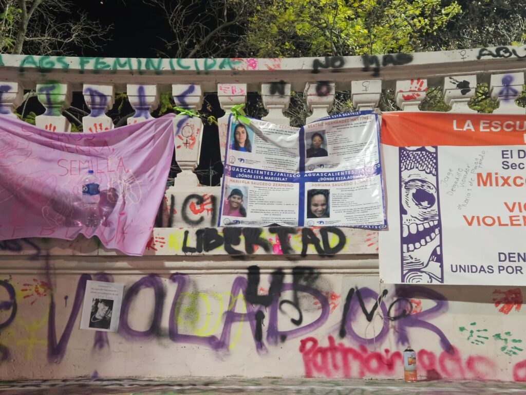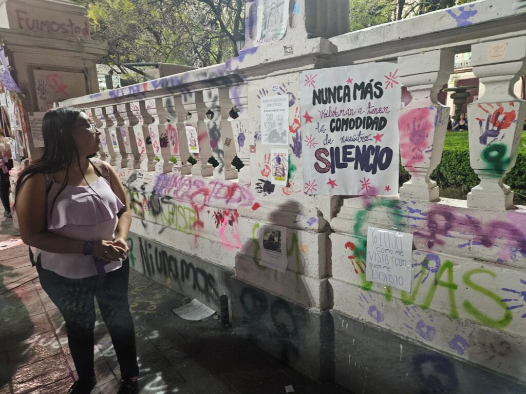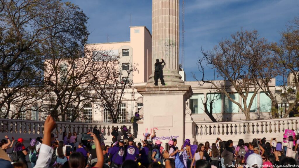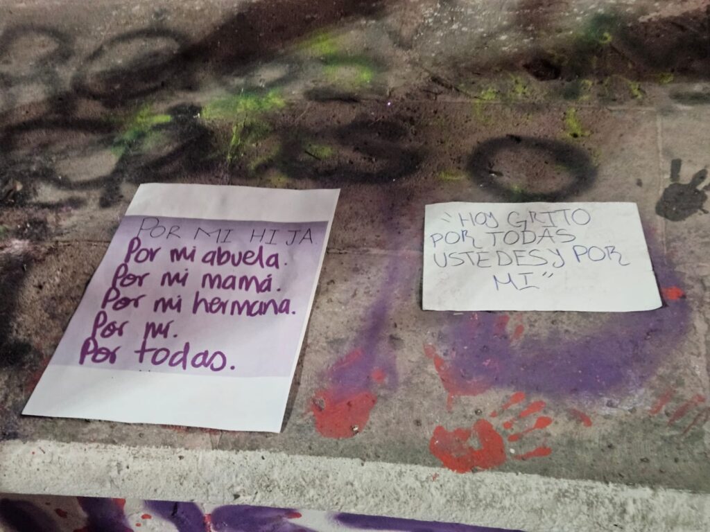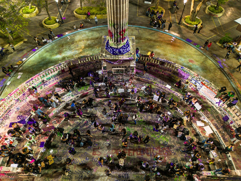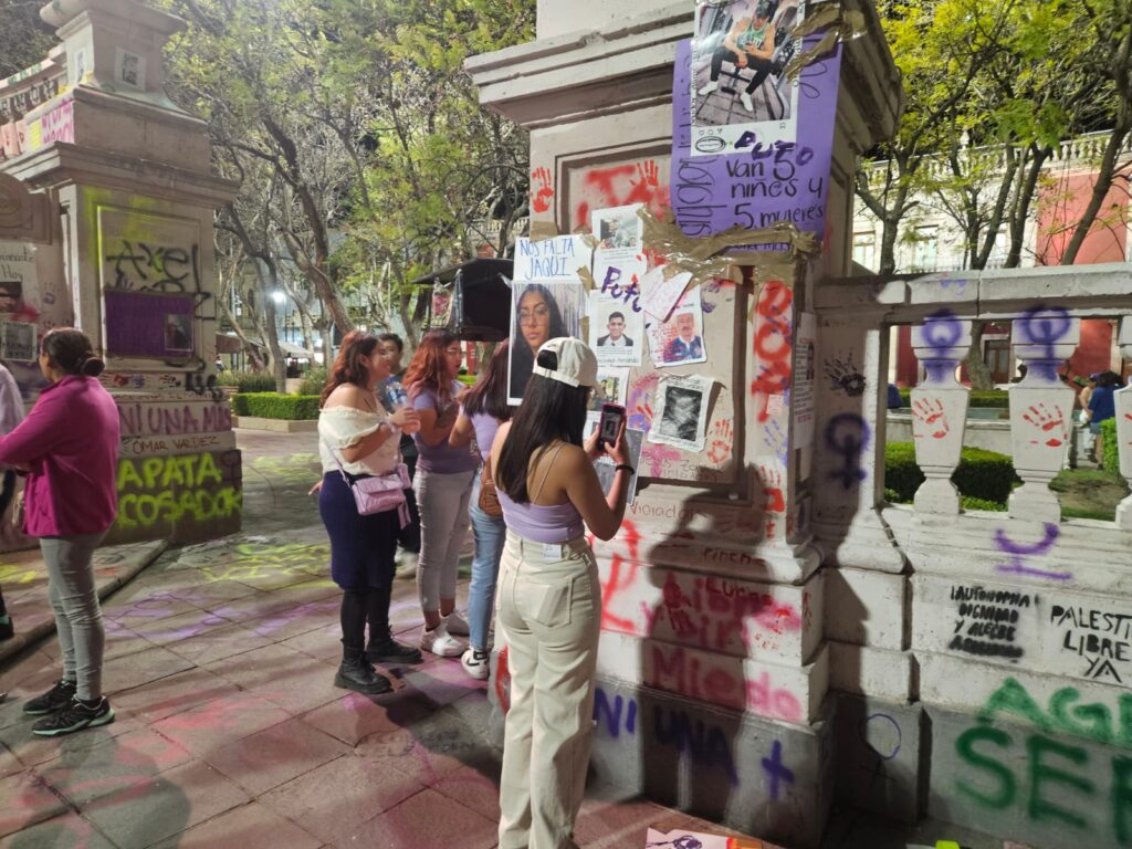 Estos son algunos de los mensajes, pintas y pancartas que mujeres dejaron en la Exedra de la ciudad de Aguascalientes durante la manifestación por la Conmemoración del Día de la Mujer.
