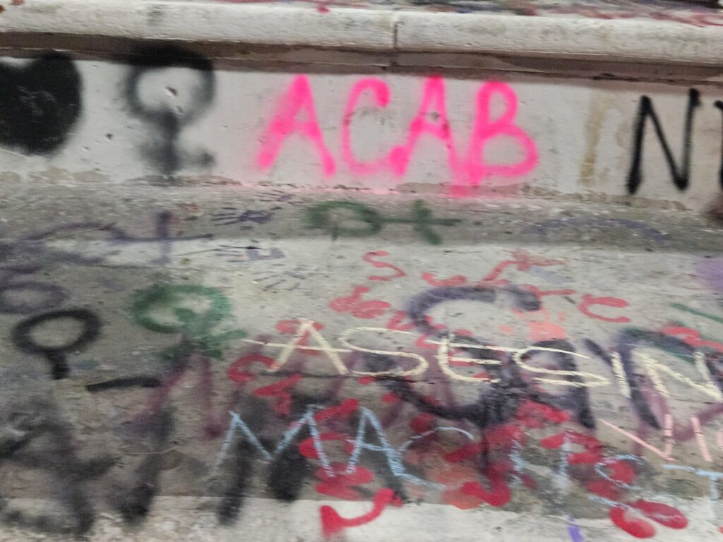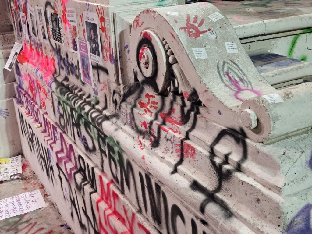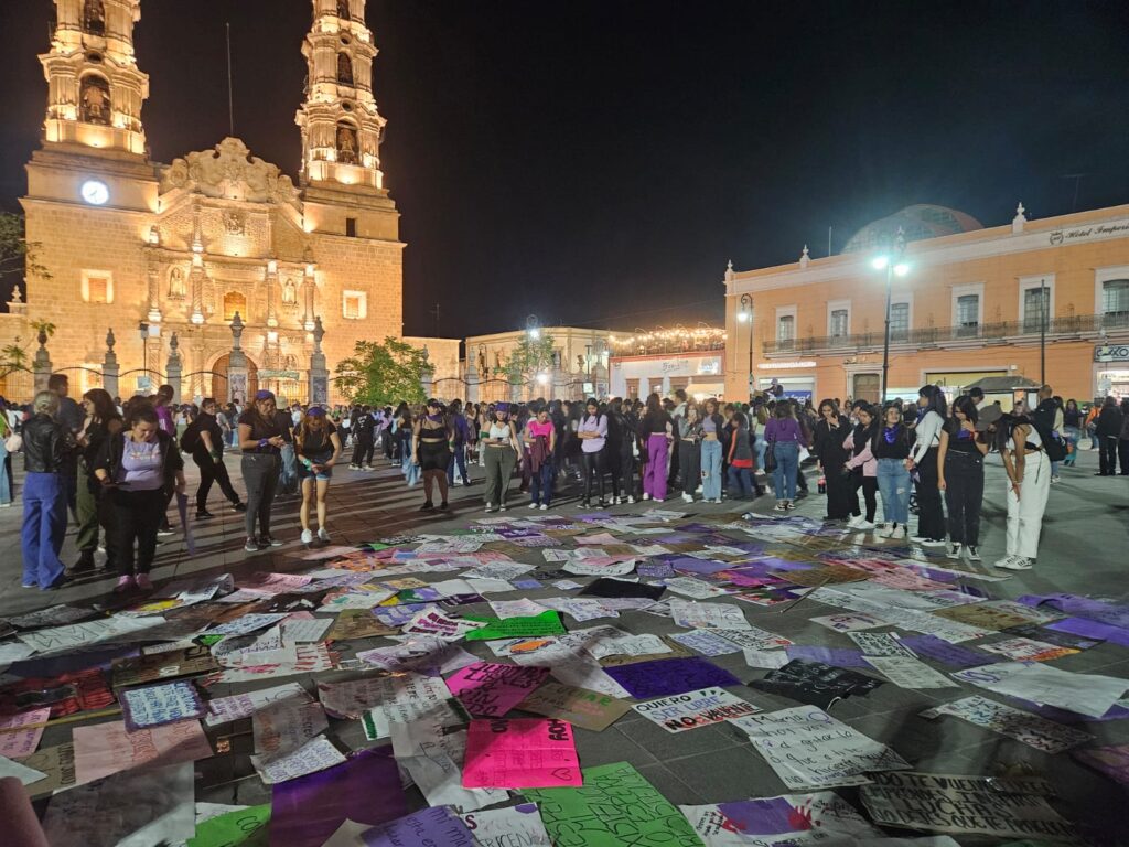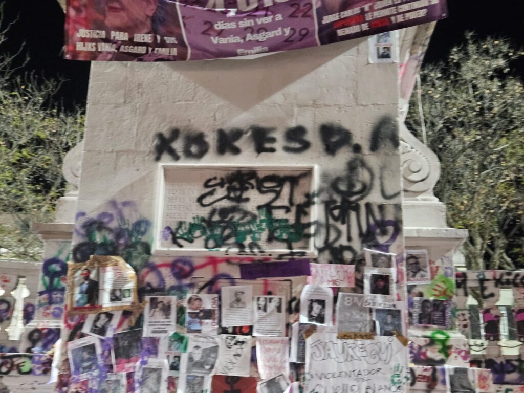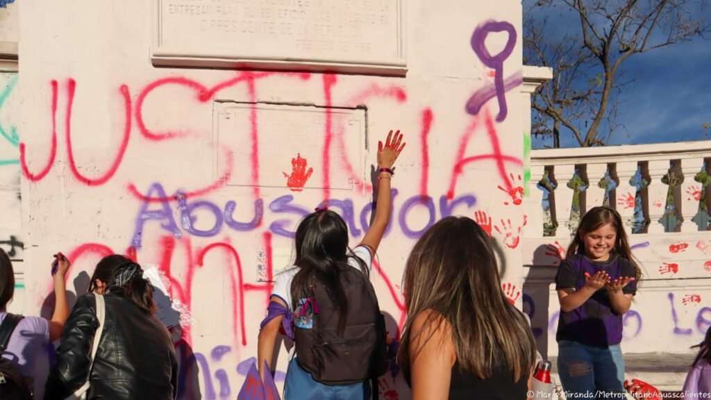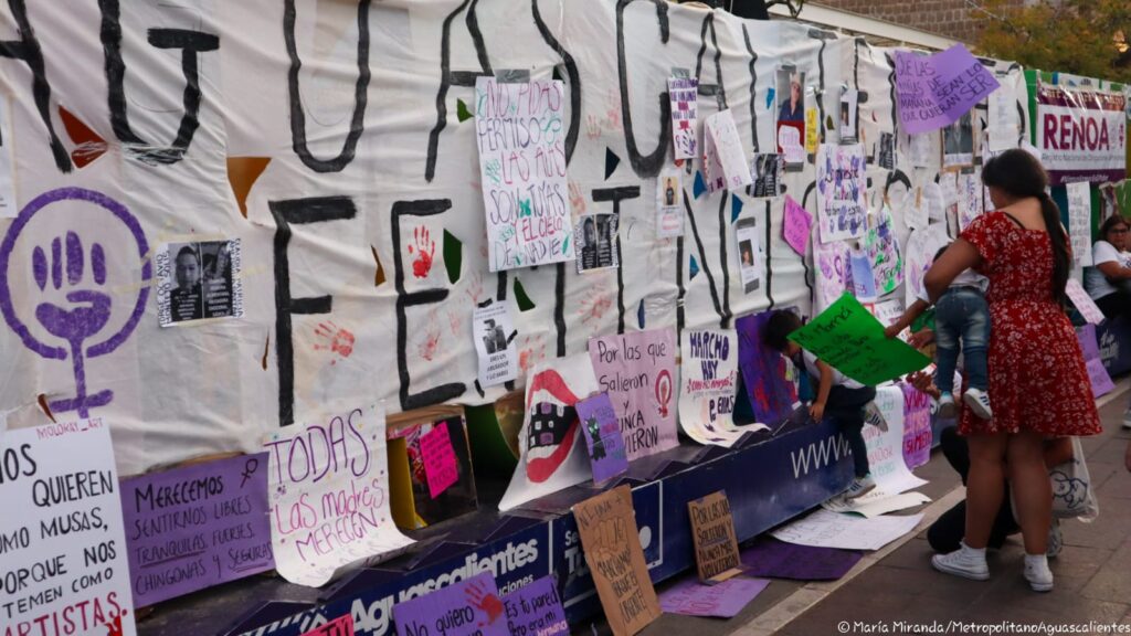 Estos son algunos de los mensajes, pintas y pancartas que mujeres dejaron en la Exedra de la ciudad de Aguascalientes durante la manifestación por la Conmemoración del Día de la Mujer.