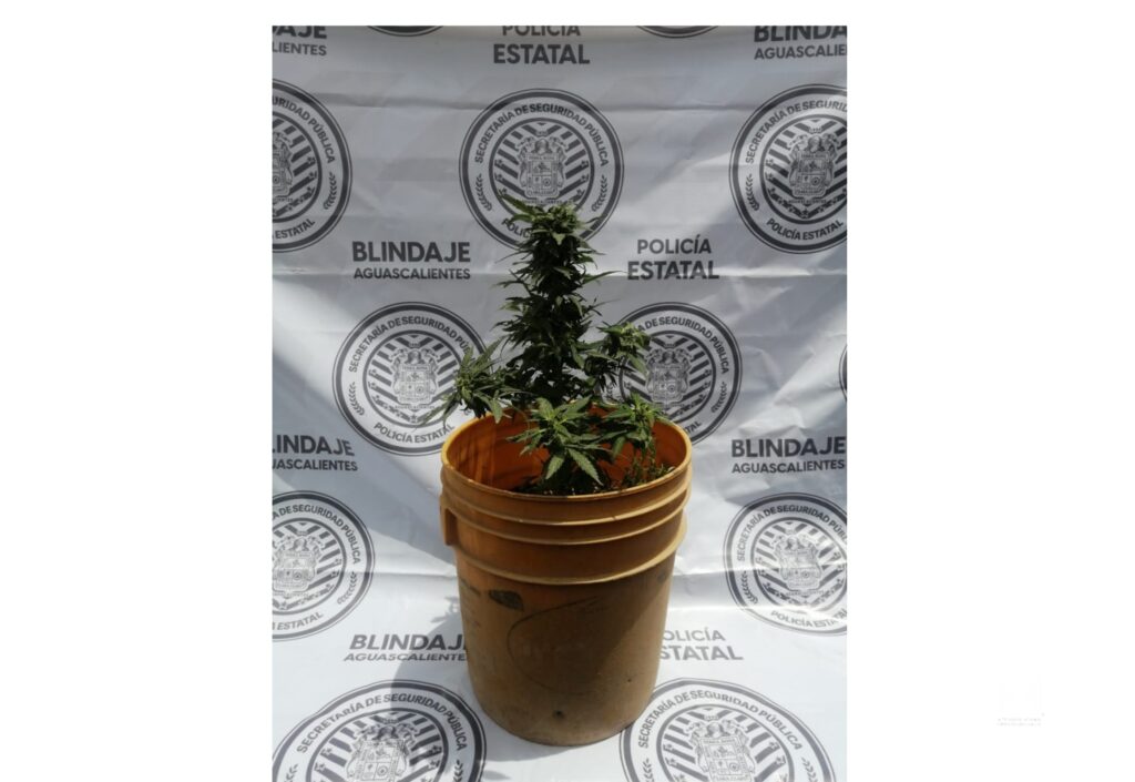 Una planta de marihuana fue asegurada por efectivos de la Policía Estatal de la Secretaría de Seguridad Pública del Estado y de la Policía Municipal de Asientos, la cual fue presentada ante la autoridad correspondiente.