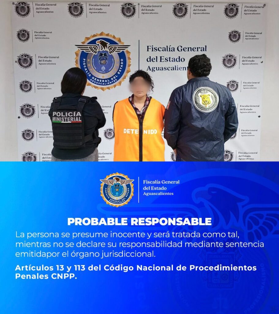 La Fiscalía General del Estado de Aguascalientes informa que, como resultado de la coordinación interinstitucional y el trabajo operativo de sus áreas, se cumplimentó una orden de aprehensión en contra de Oralia “N”, quien era requerida por autoridades del estado de Nayarit.