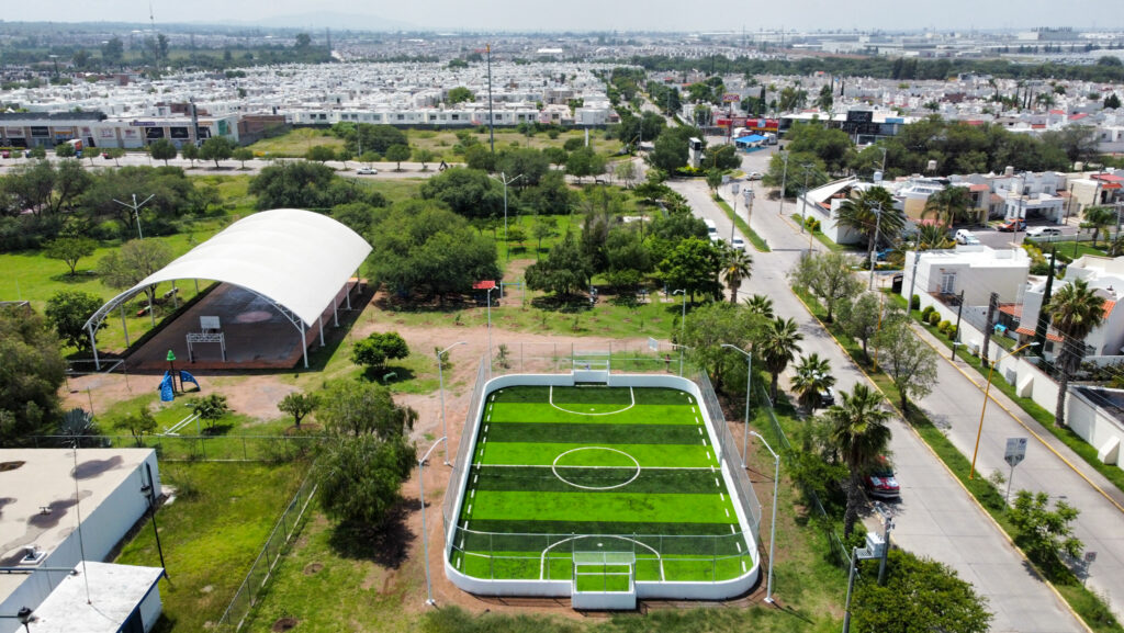 Con una inversión cercana a los 4 millones de pesos se construyen una cancha de pasto sintético en el parque de Villa Sur y se coloca una velaria en el parque Versalles I
